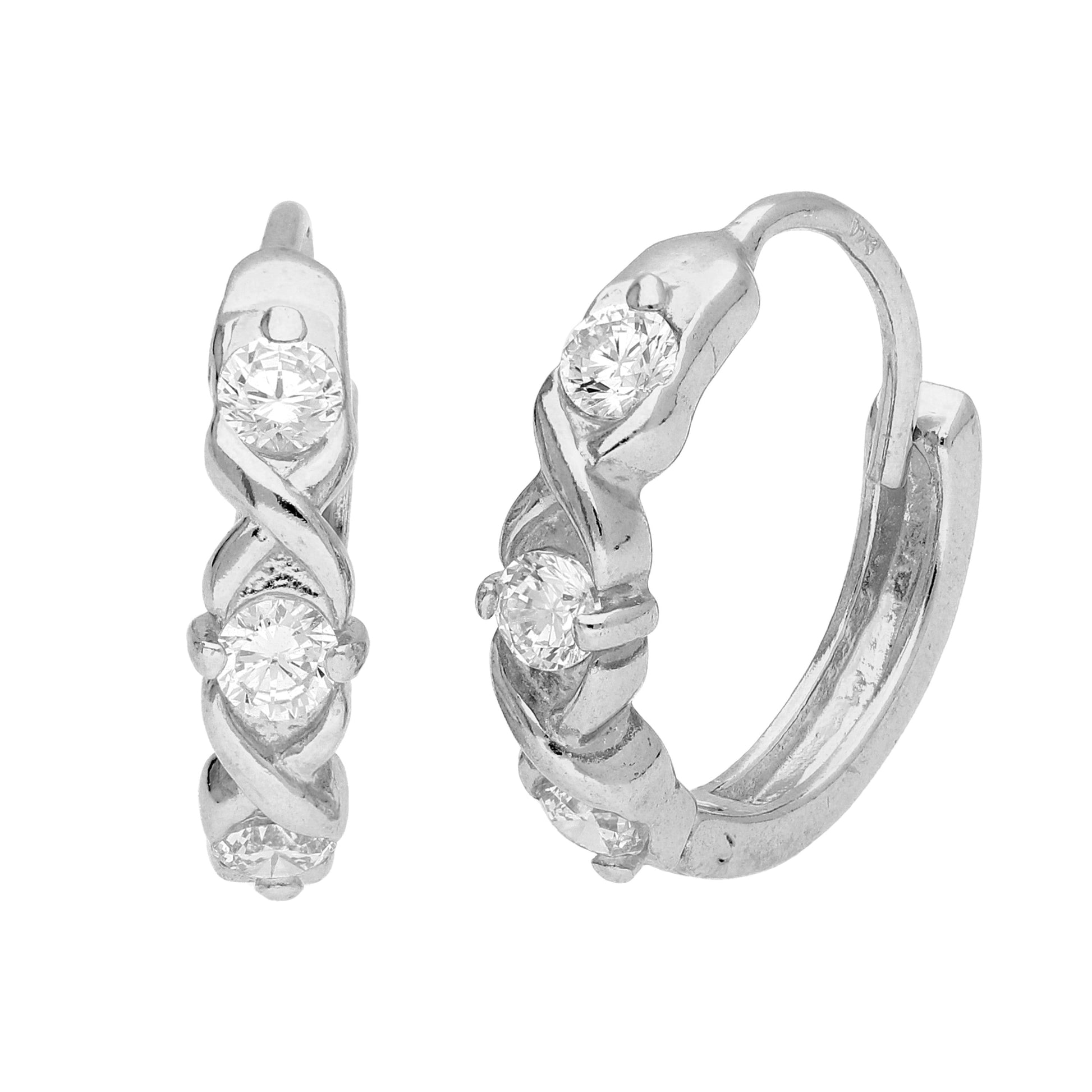 Sterlingsilber CZ Dreifach Ineinandergreifend Klappcreolen Ohrringe