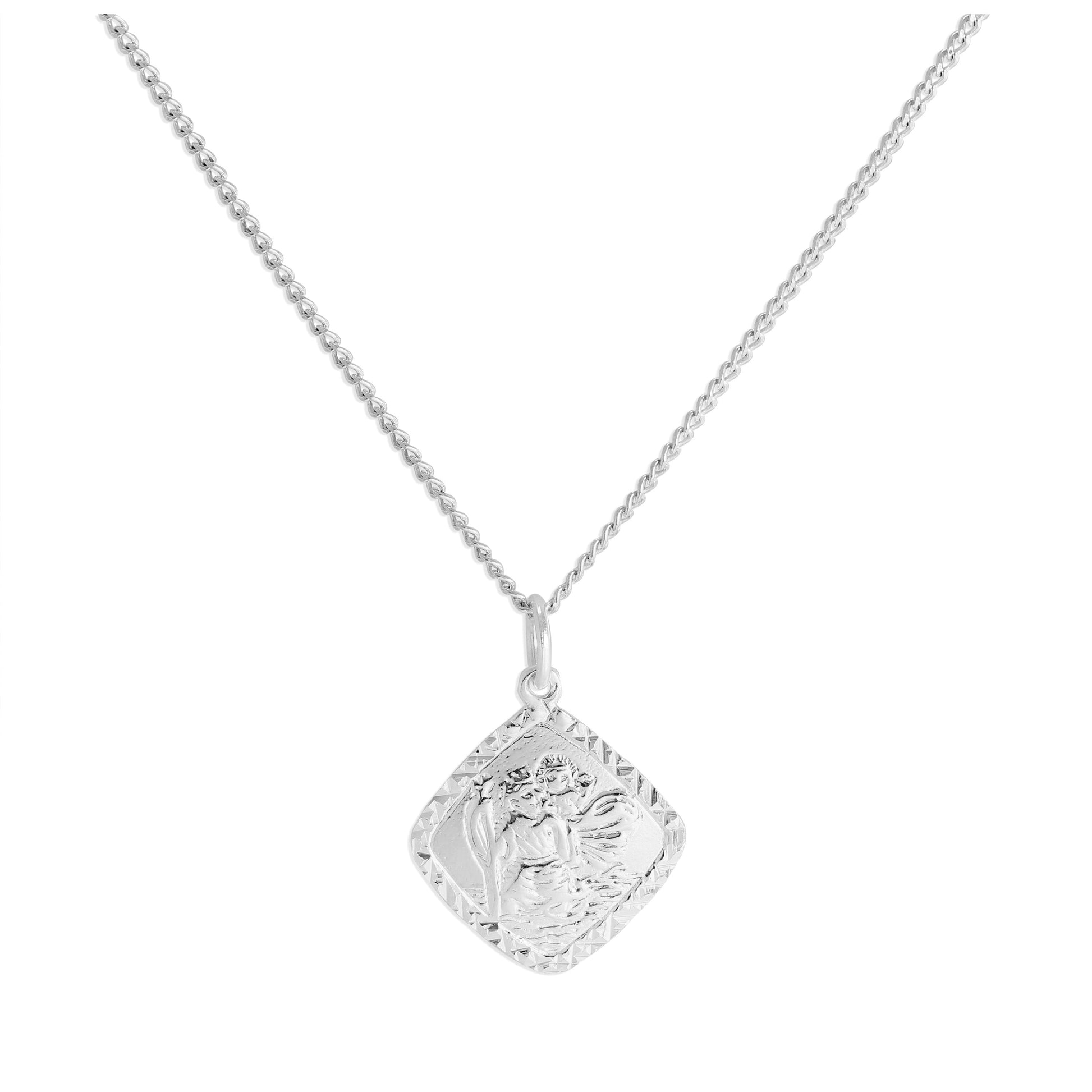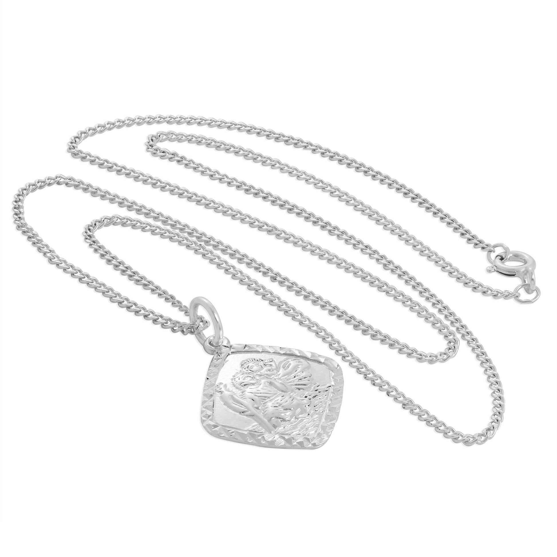 Halskette aus Sterlingsilber mit Diamantschliff und quadratischem St. Christopher-Anhänger, 16–24 Zoll