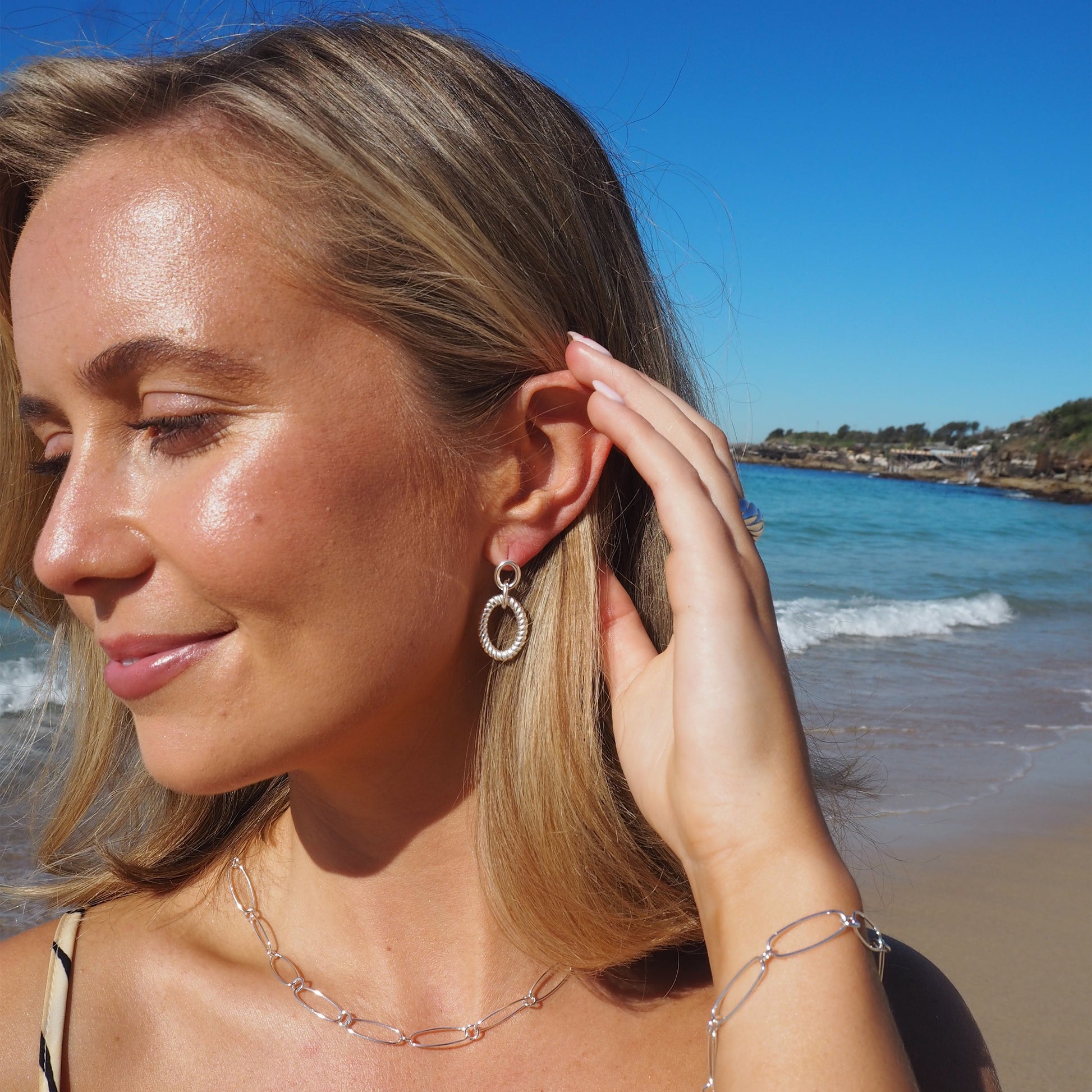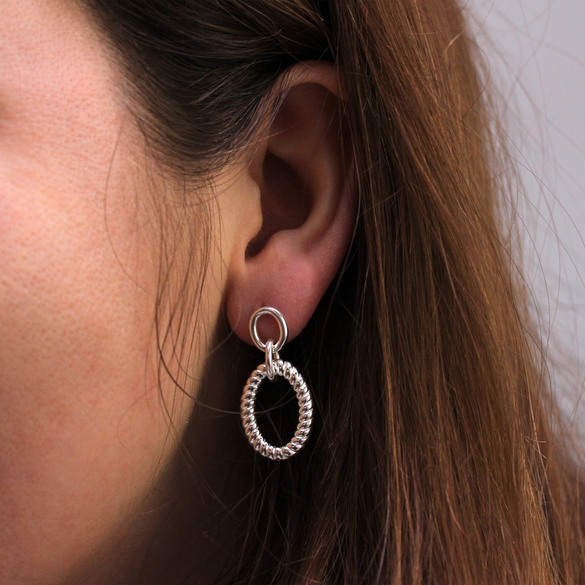 Doppelte ovale Twist-Seil-Ohrstecker aus Sterlingsilber
