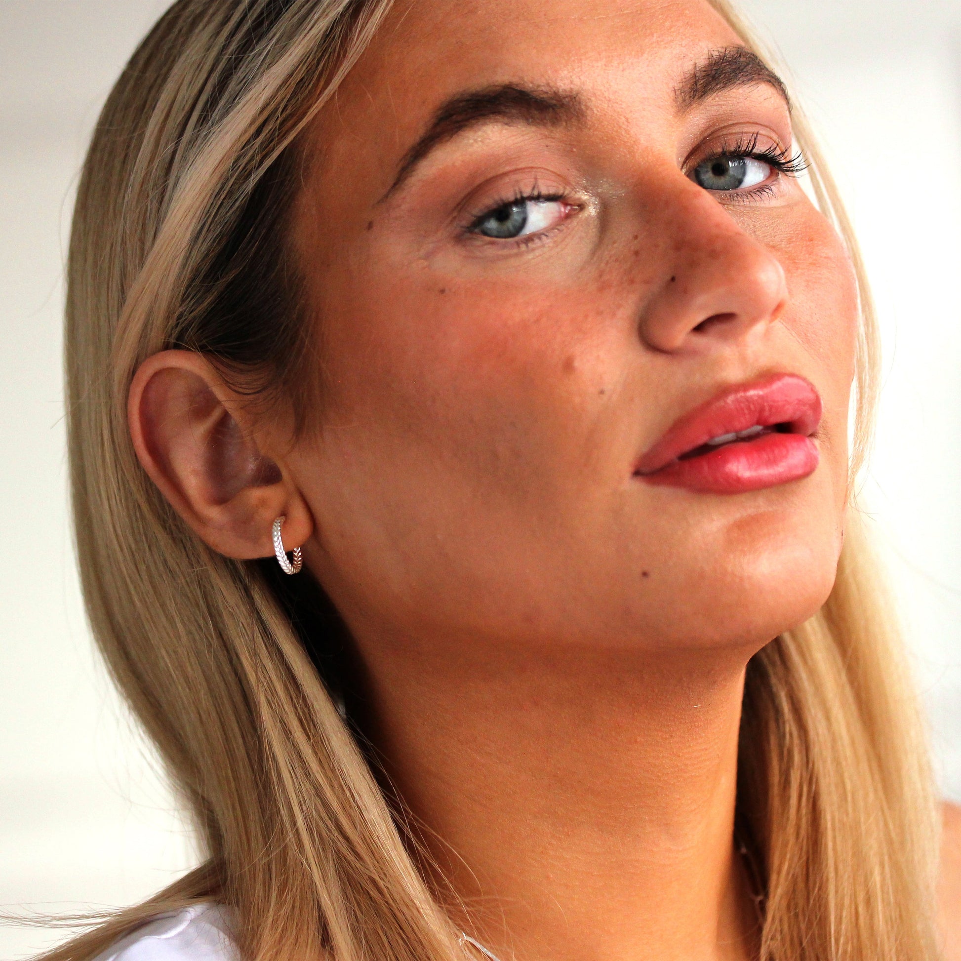 Sterlingsilber Doppel Gedreht Offen 14mm Creolen Ohrstecker