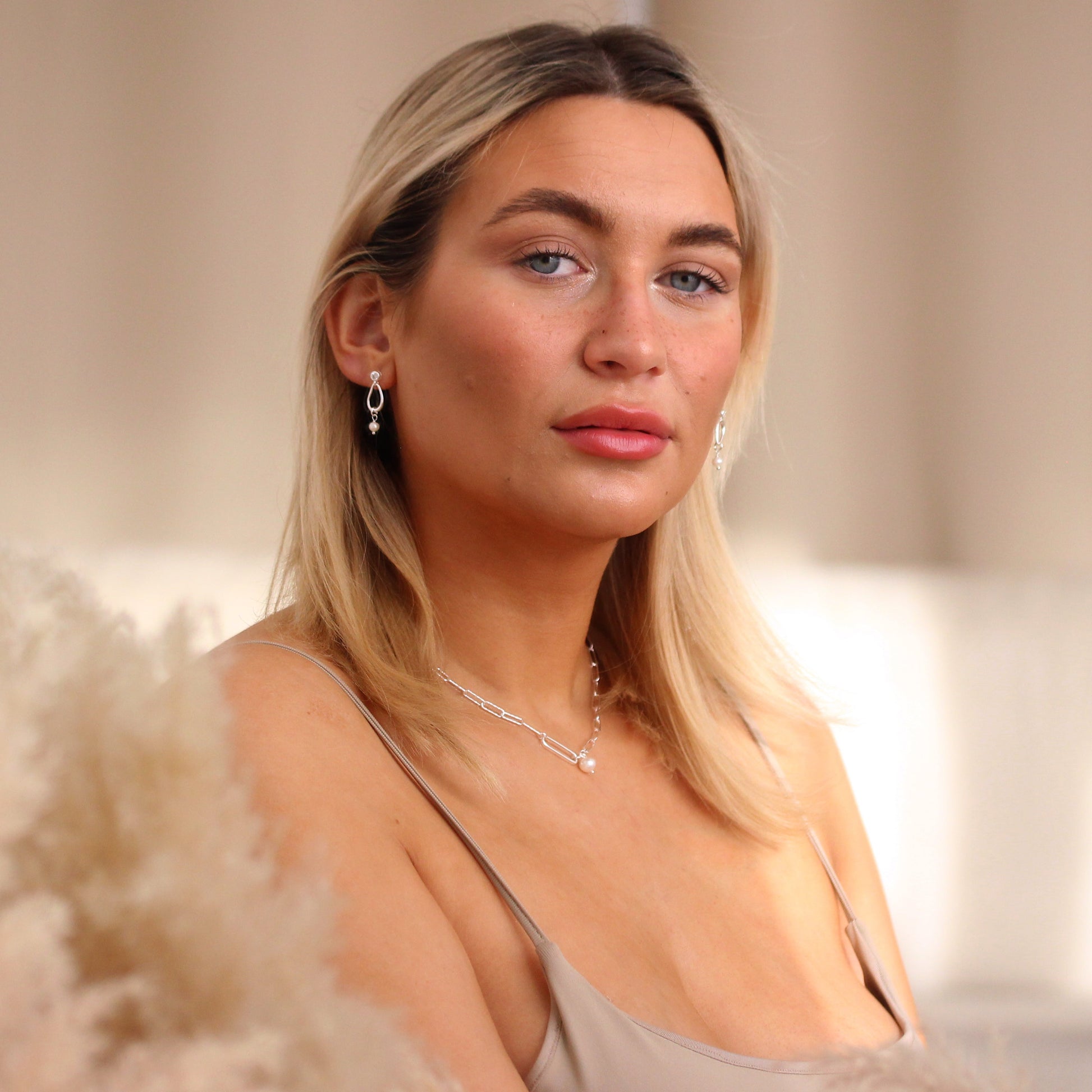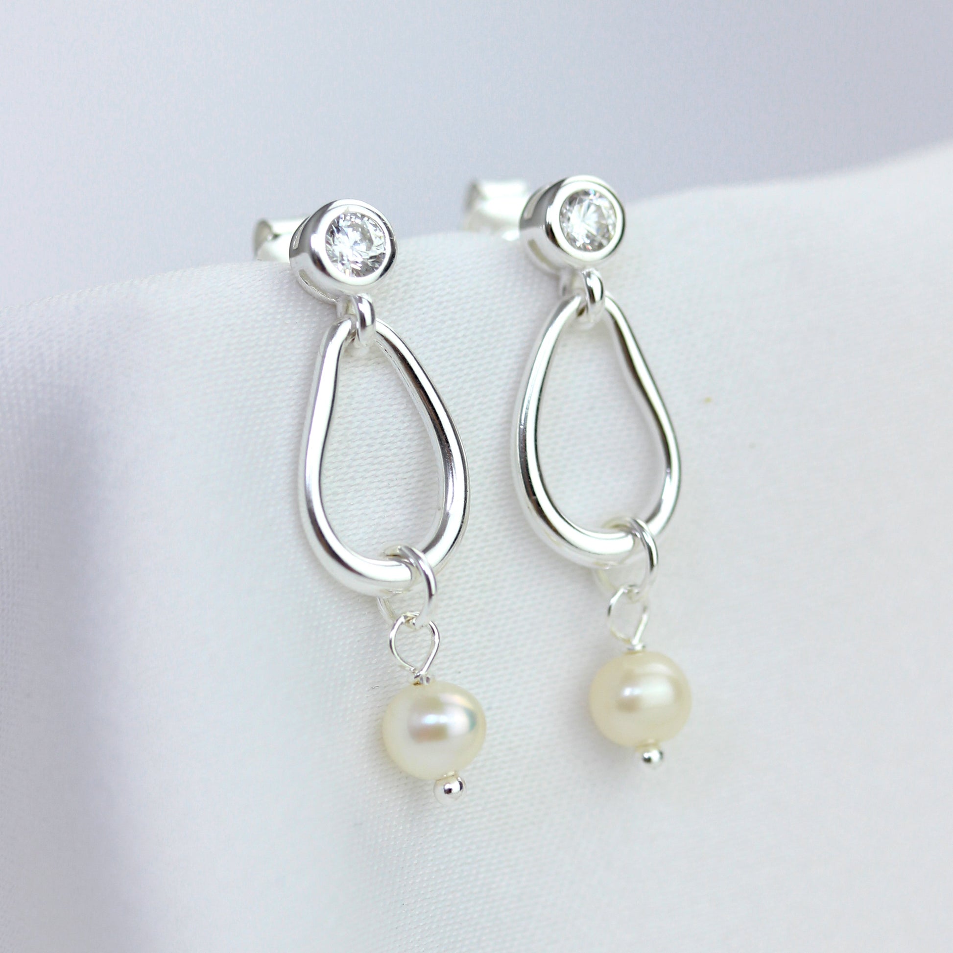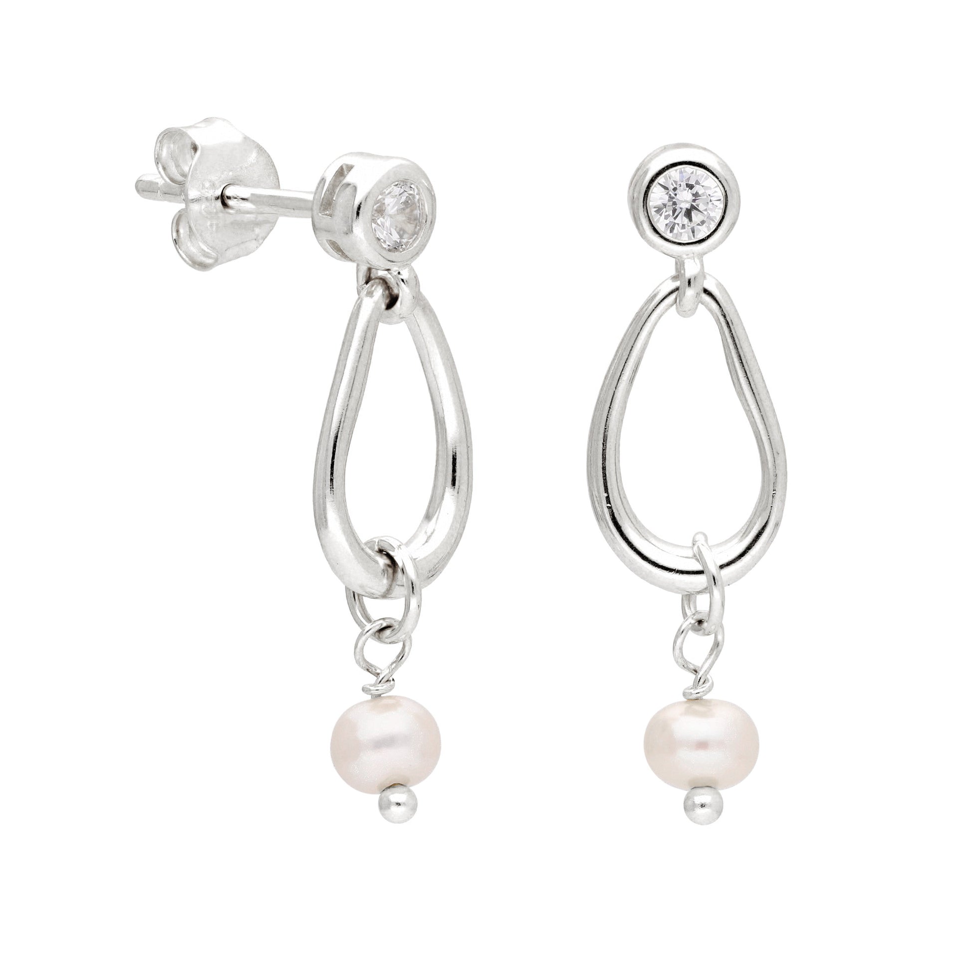 Sterlingsilber Hänge Süßwasserperle & CZ Baumel Ohrringe