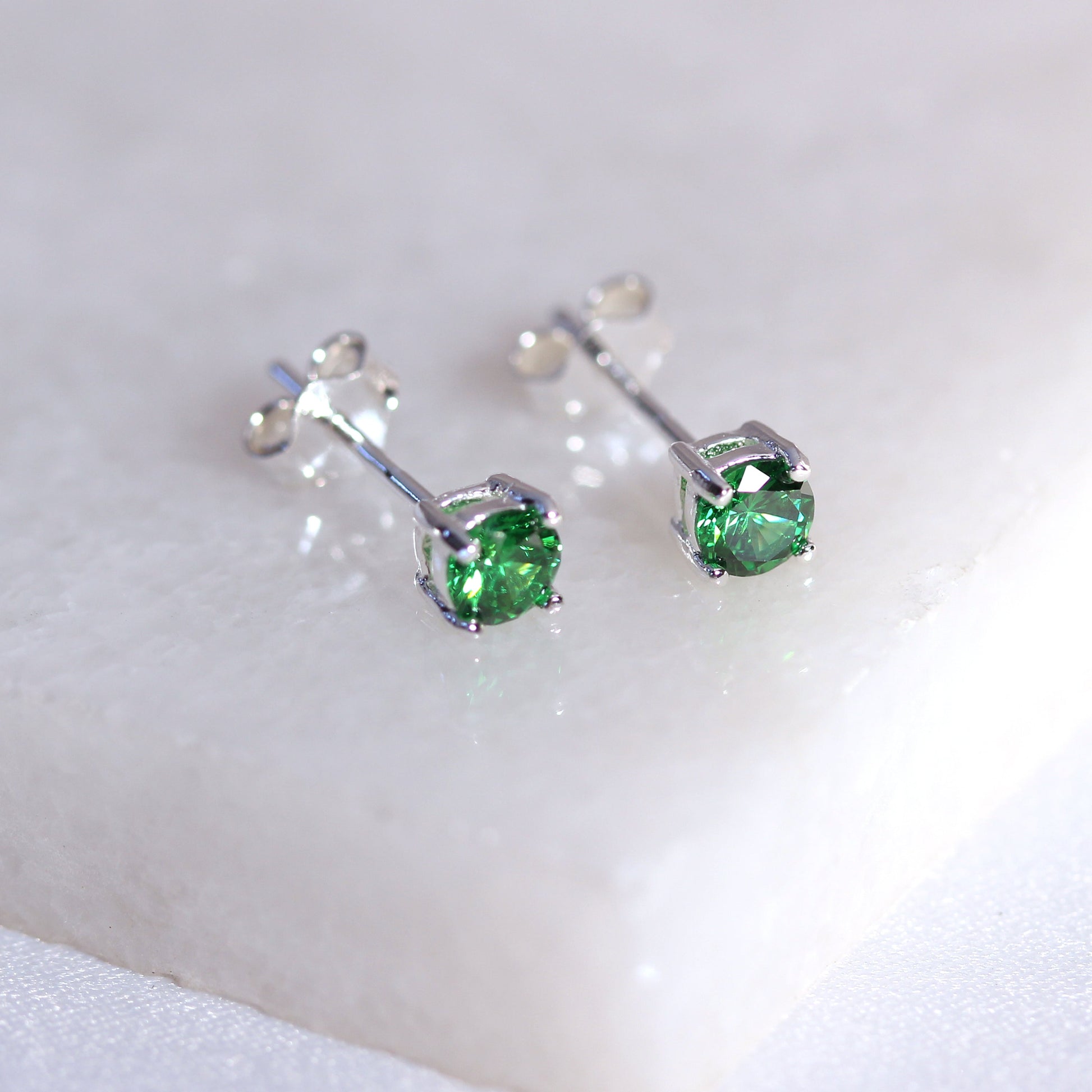 Sterlingsilber Smaragd CZ Mai Geburtsstein 4mm Ohrstecker