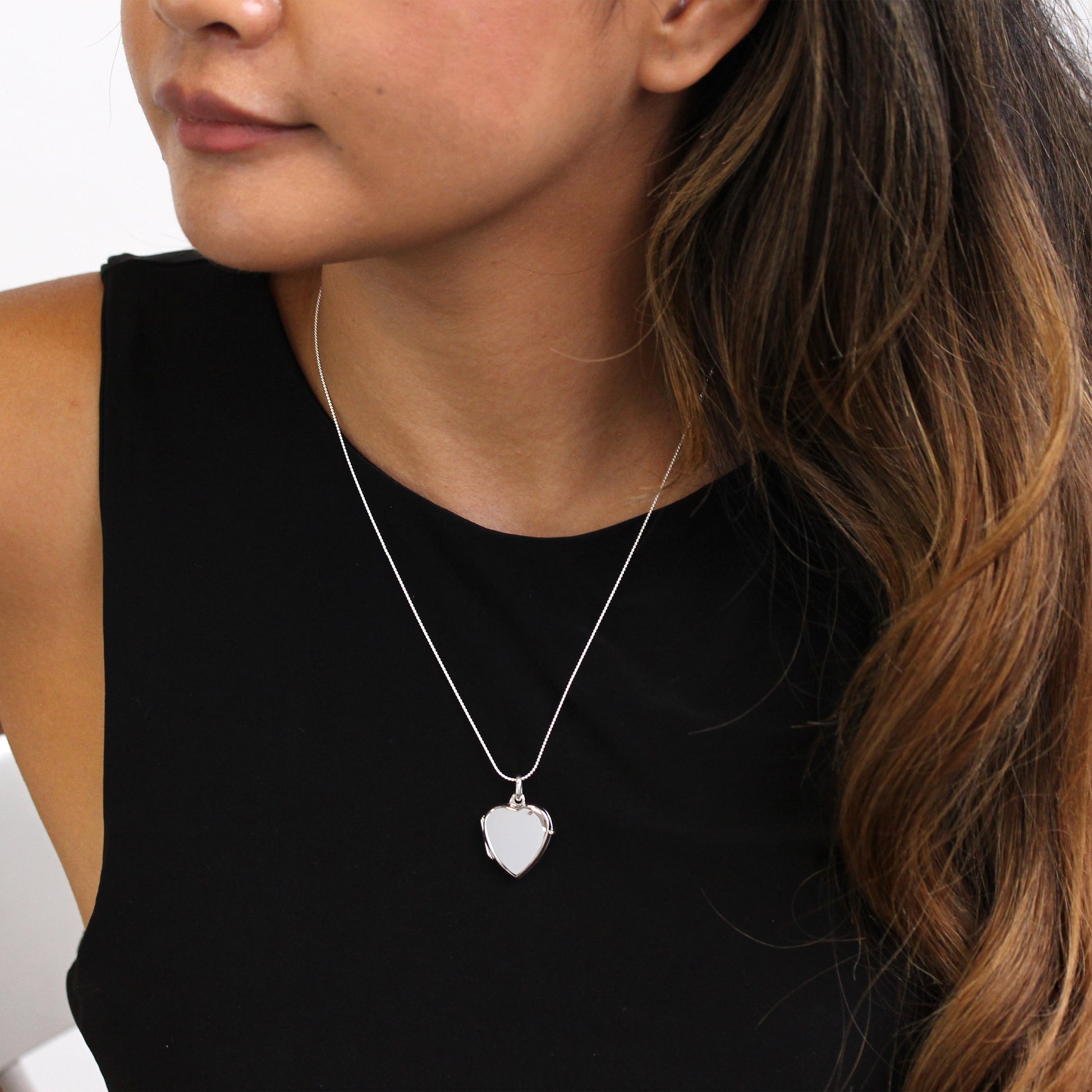 Gravierbares Herzmedaillon aus Sterlingsilber an einer Kette, 16–22 Zoll