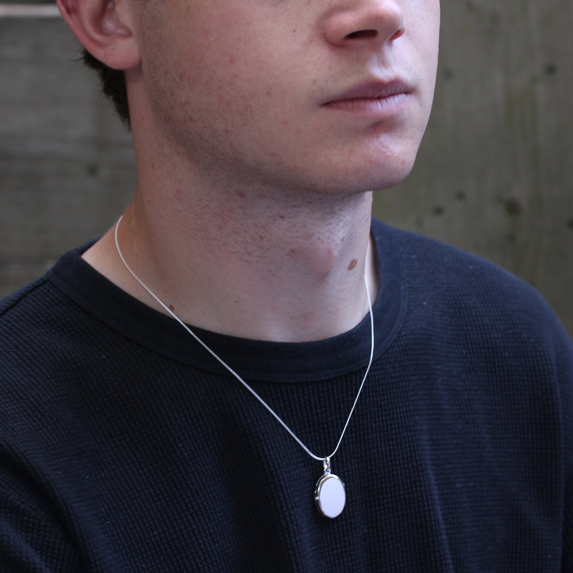 Ovales Medaillon aus Sterlingsilber mit Gravur an einer Kette, 40–56 cm