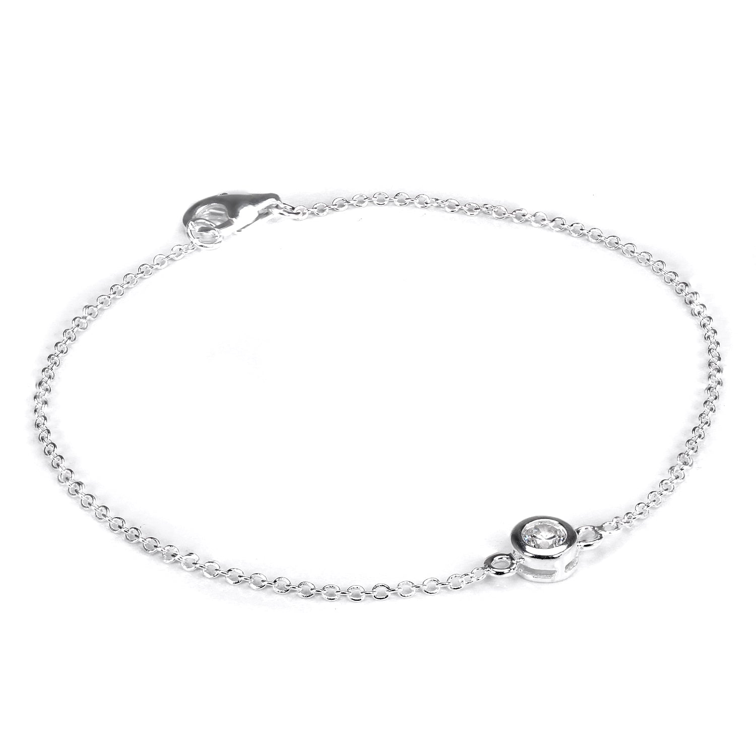 Sterlingsilber Fein Belcher Armband mit Rund CZ Kristall & Verschluss