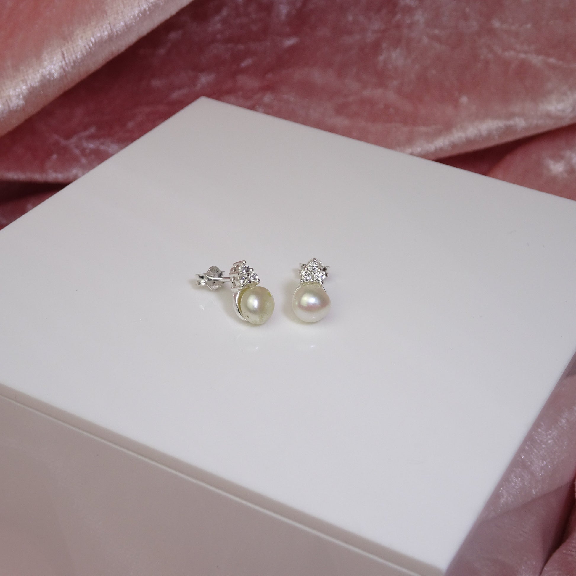 Sterlingsilber Süßwasserperle & CZ Kristall Ohrstecker