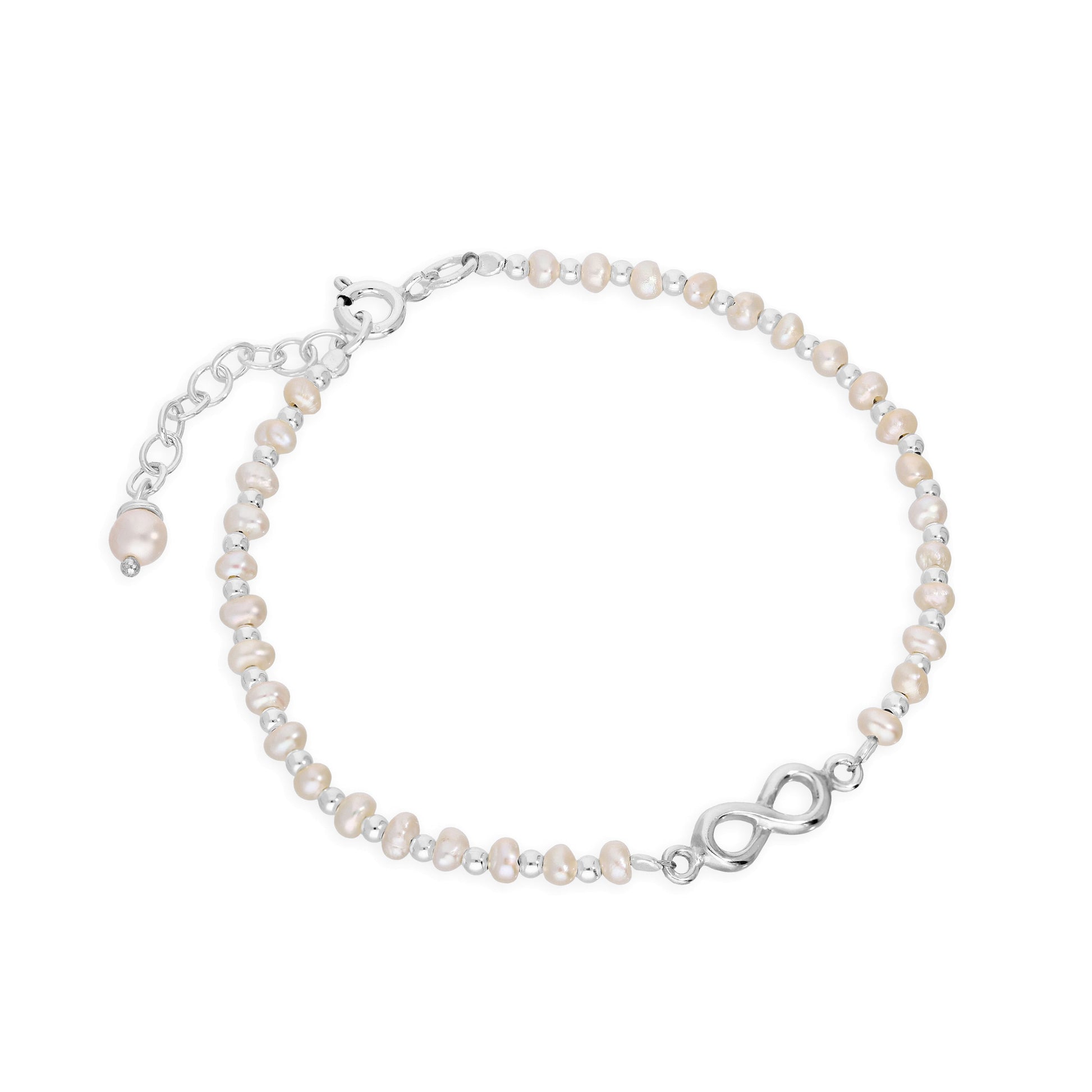 Sterlingsilber & Süßwasserperle Unendlichkeit Symbol Armband 20,5cm