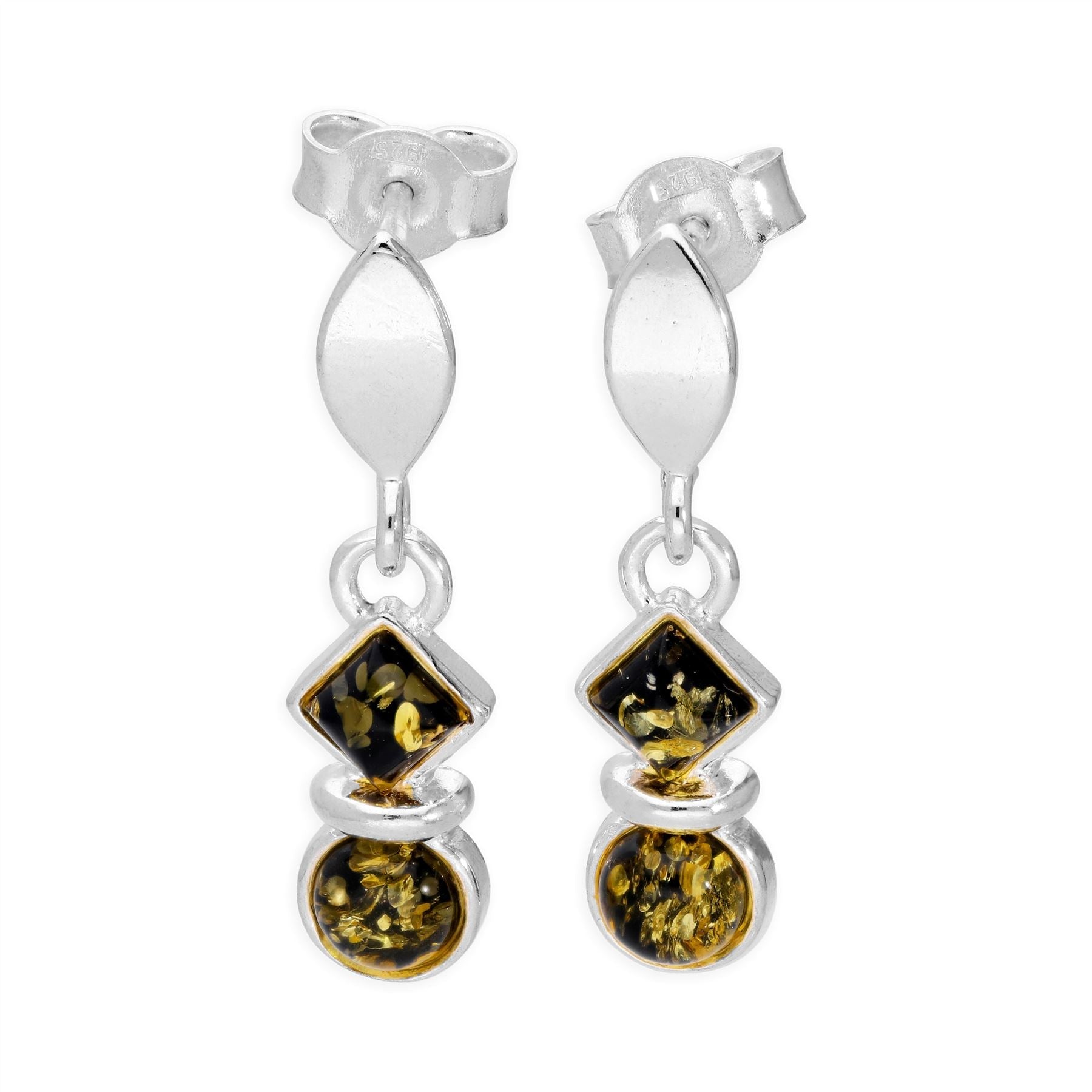 Ohrstecker aus Sterlingsilber und grünem baltischem Bernstein in Kreis- und Quadratform