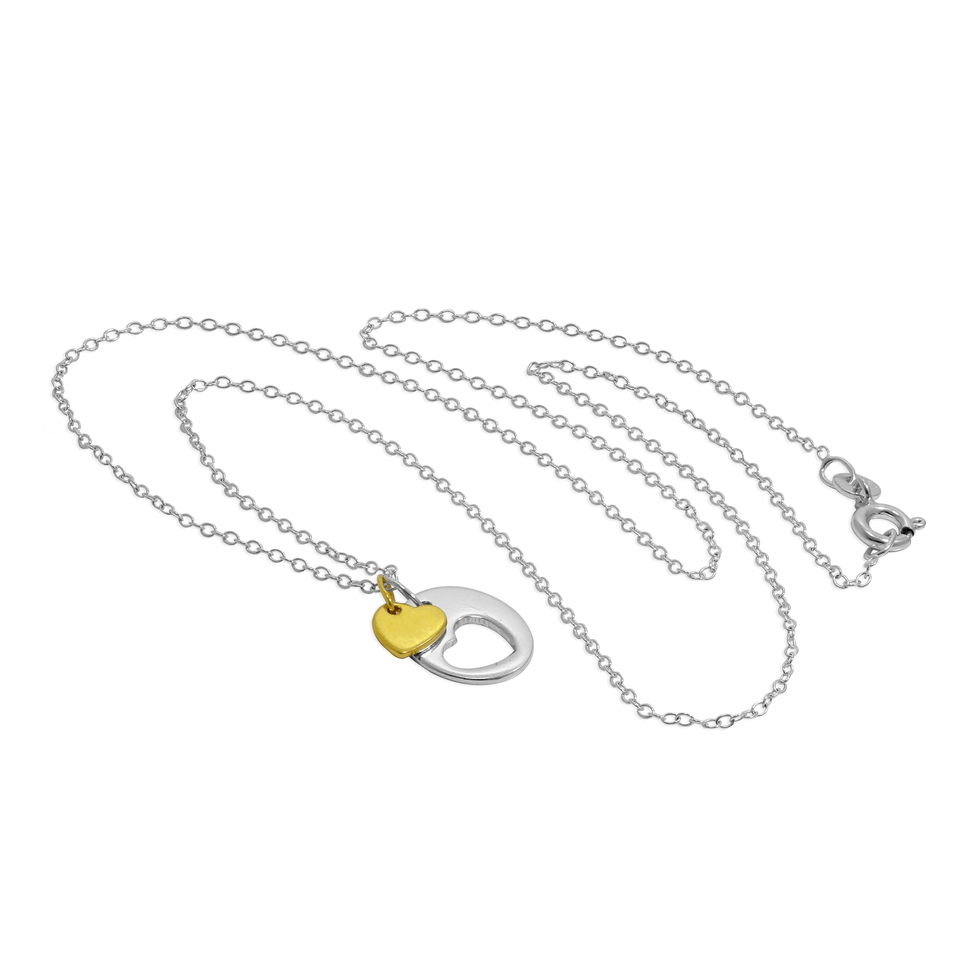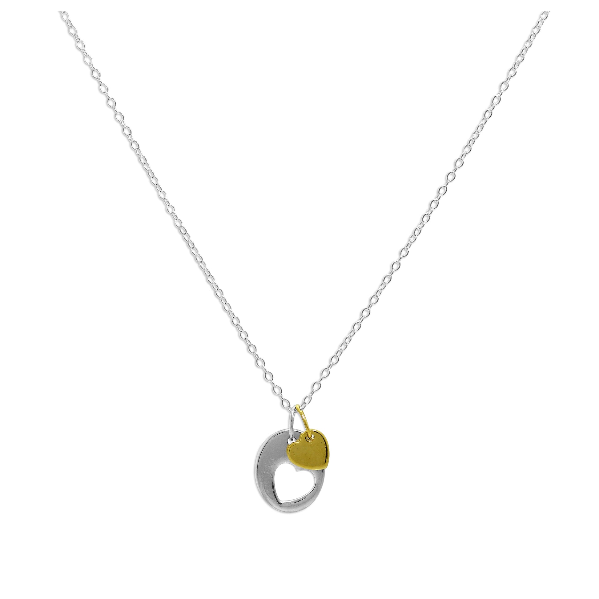 Sterlingsilber Ausgeschnitten Herz Scheibe & Gelbgold getaucht Herz Anhänger Halskette