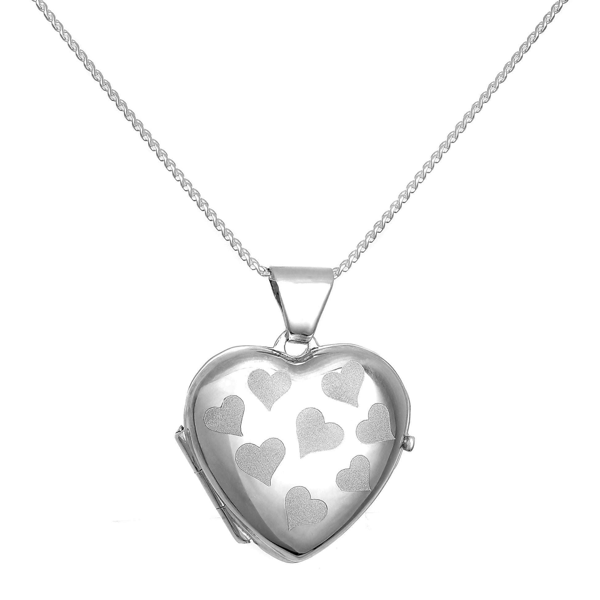 Sterling Silber Herz Medaillon mit matten Herzen an Kette