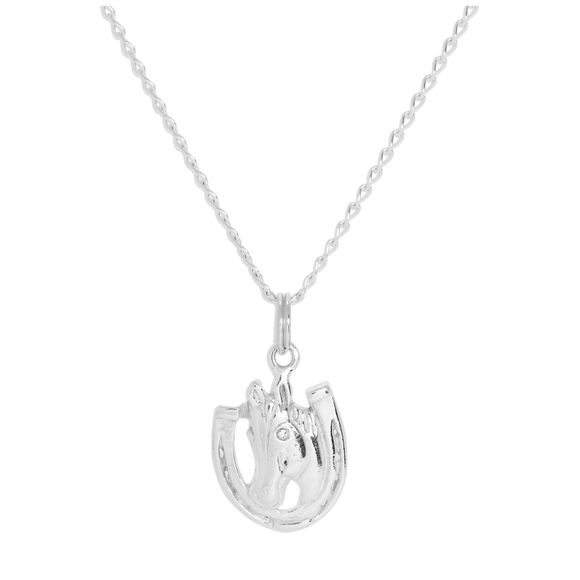 Sterling Silber Pferd & Glückshufeisen Anhänger Halskette 16 - 24 Zoll
