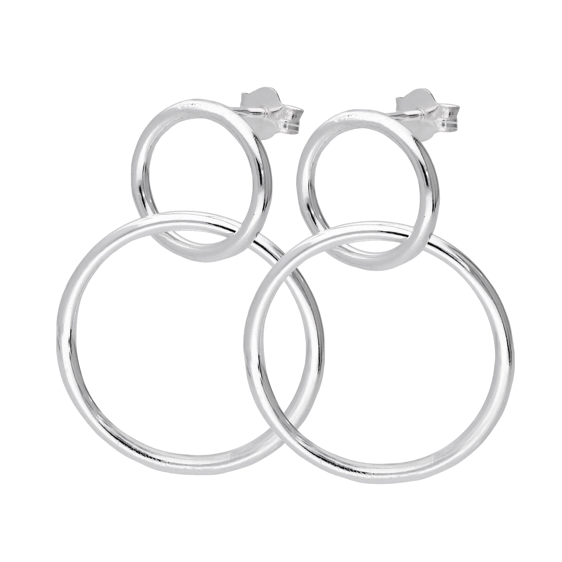 Sterlingsilber Ineinandergreifende Doppelkreis Ohrstecker
