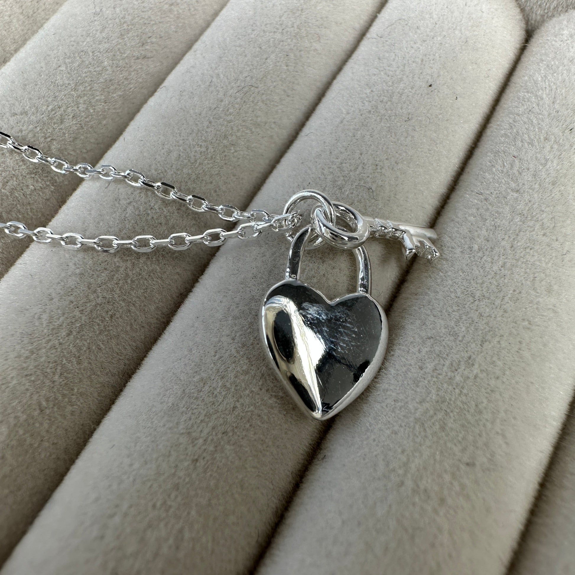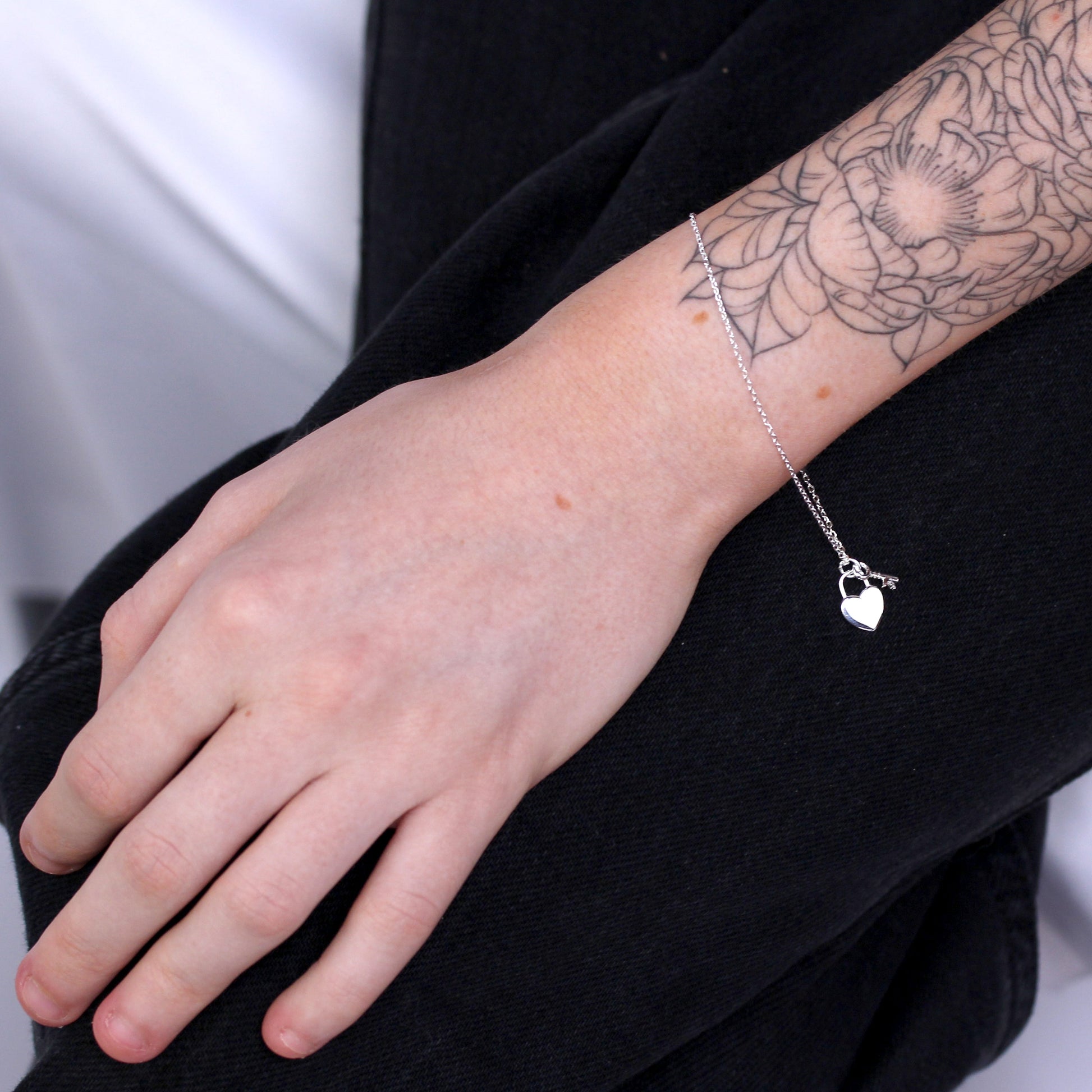 Sterlingsilber Schlüssel & Herz Vorhängeschloss Armband Einstellbar