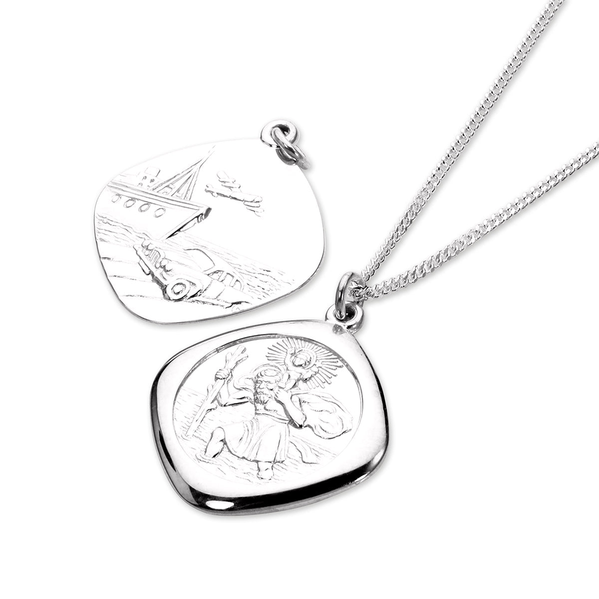 Sterlingsilber Groß Umkehrbar Quadrat St. Christophorus Anhänger - 40,5 - 61cm