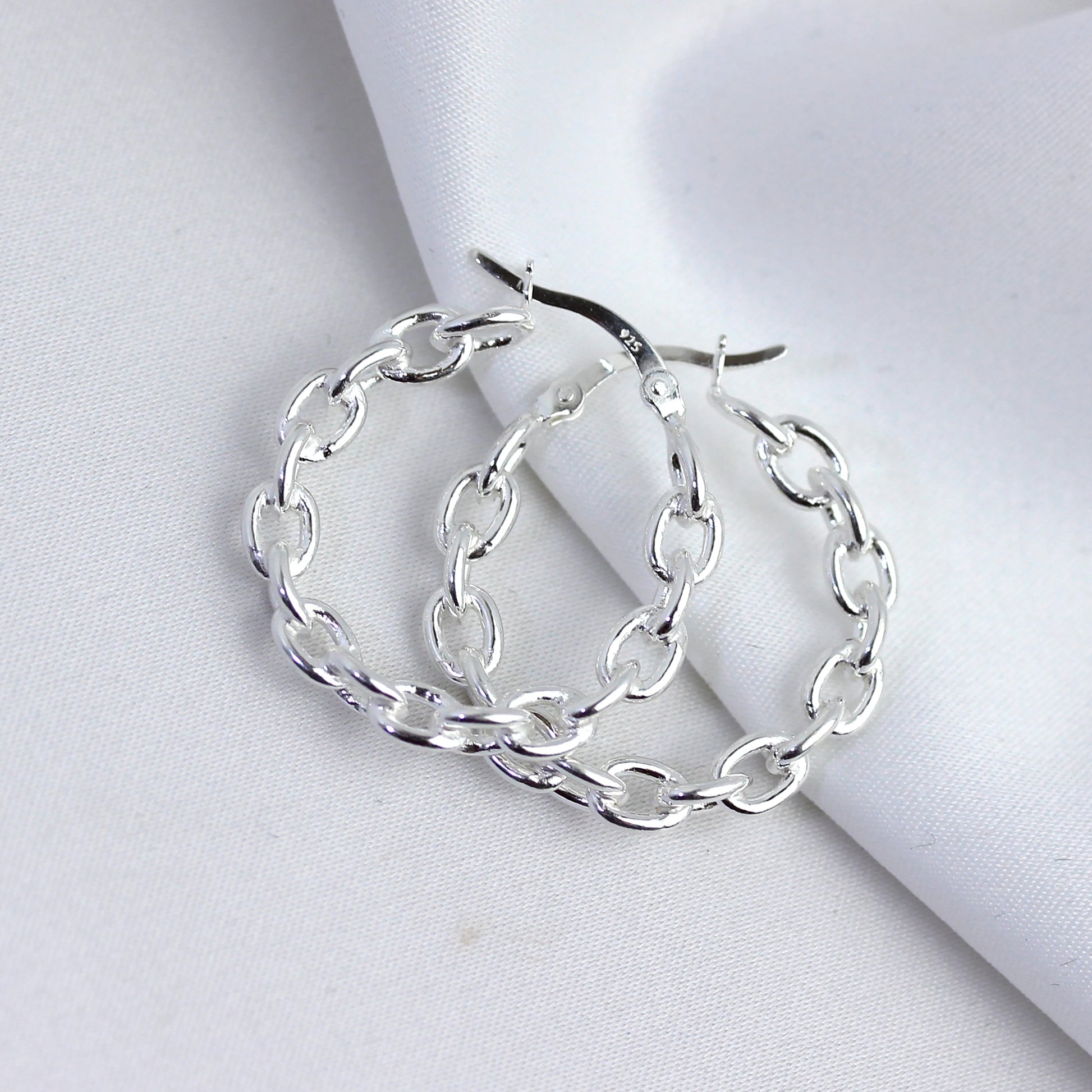 Sterlingsilber Lang Kettenglied Creolen Ohrringe