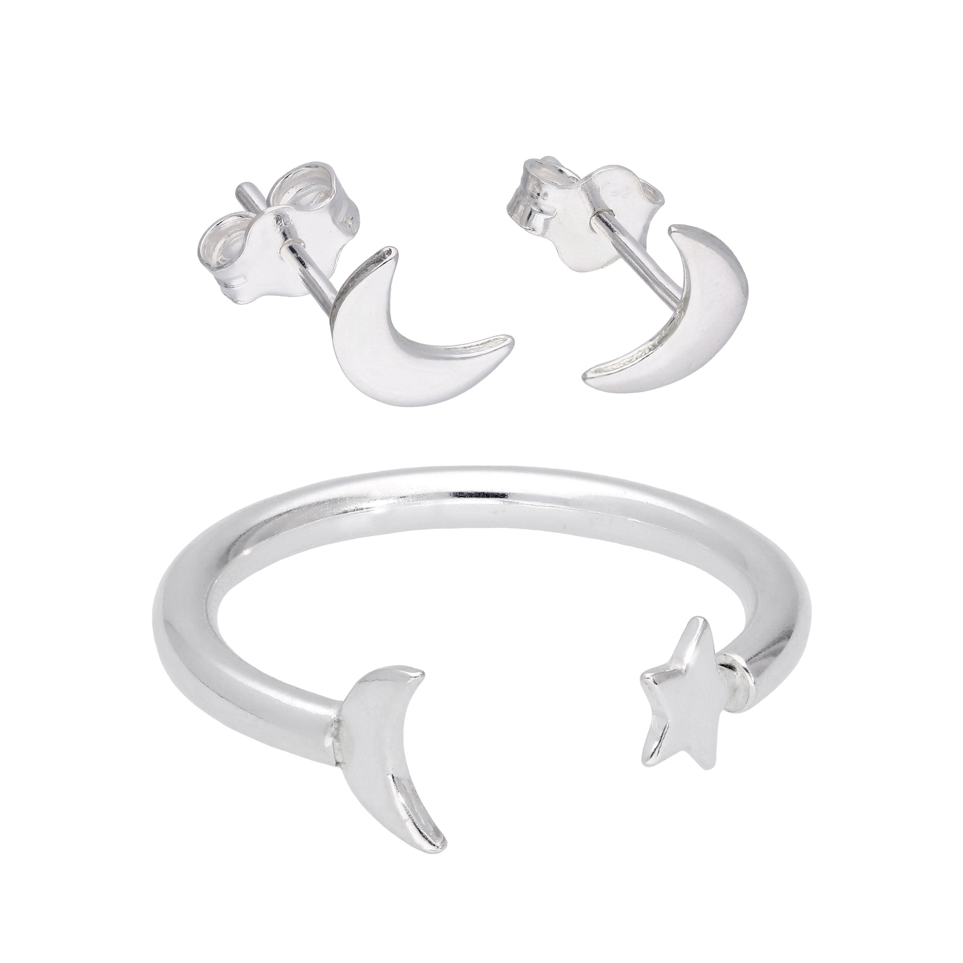 Sterlingsilber Mond Ring & Ohrstecker Satz