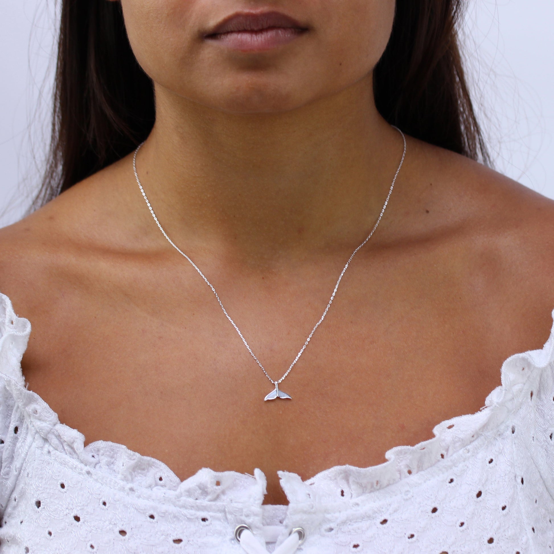 Sterlingsilber Perlmutt Walfischschwanz Halskette 45,5cm