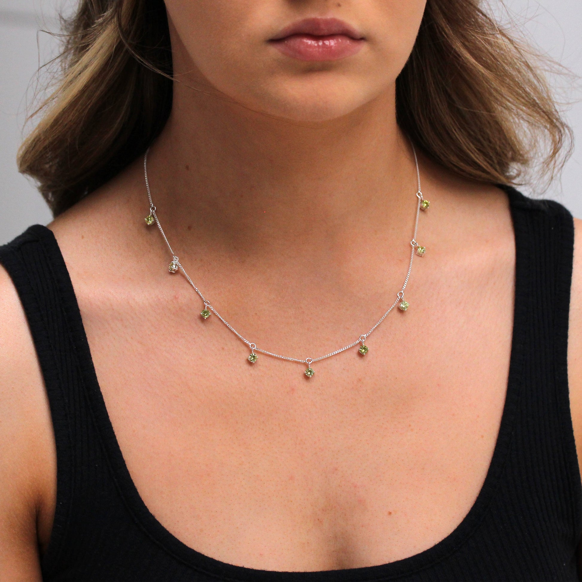 Sterlingsilber Mehr Peridot CZ August Halskette 40,5 + 5cm