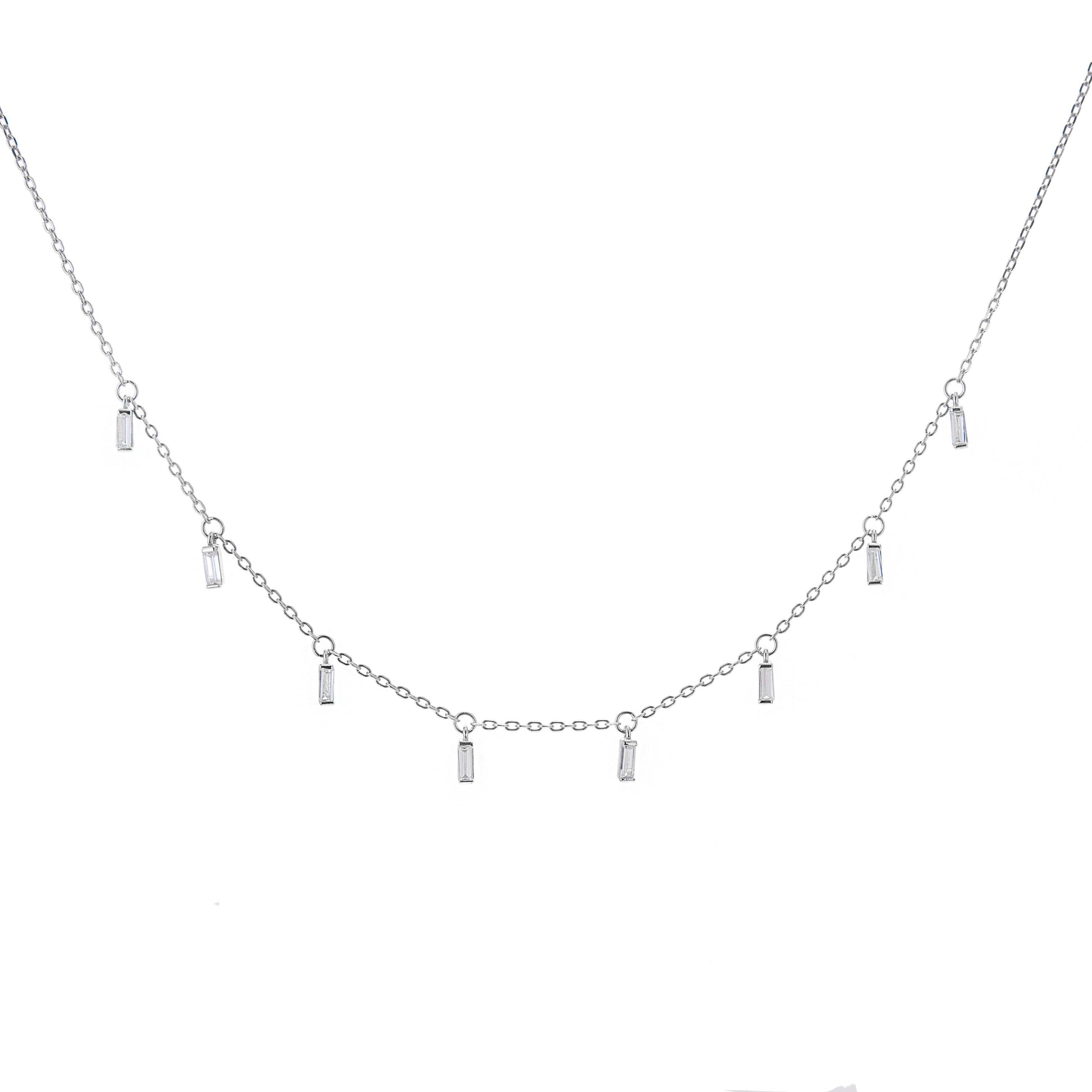 Sterlingsilber Mehrfach Winzig Baguetteschliff CZ Kristall Hänger Halskette