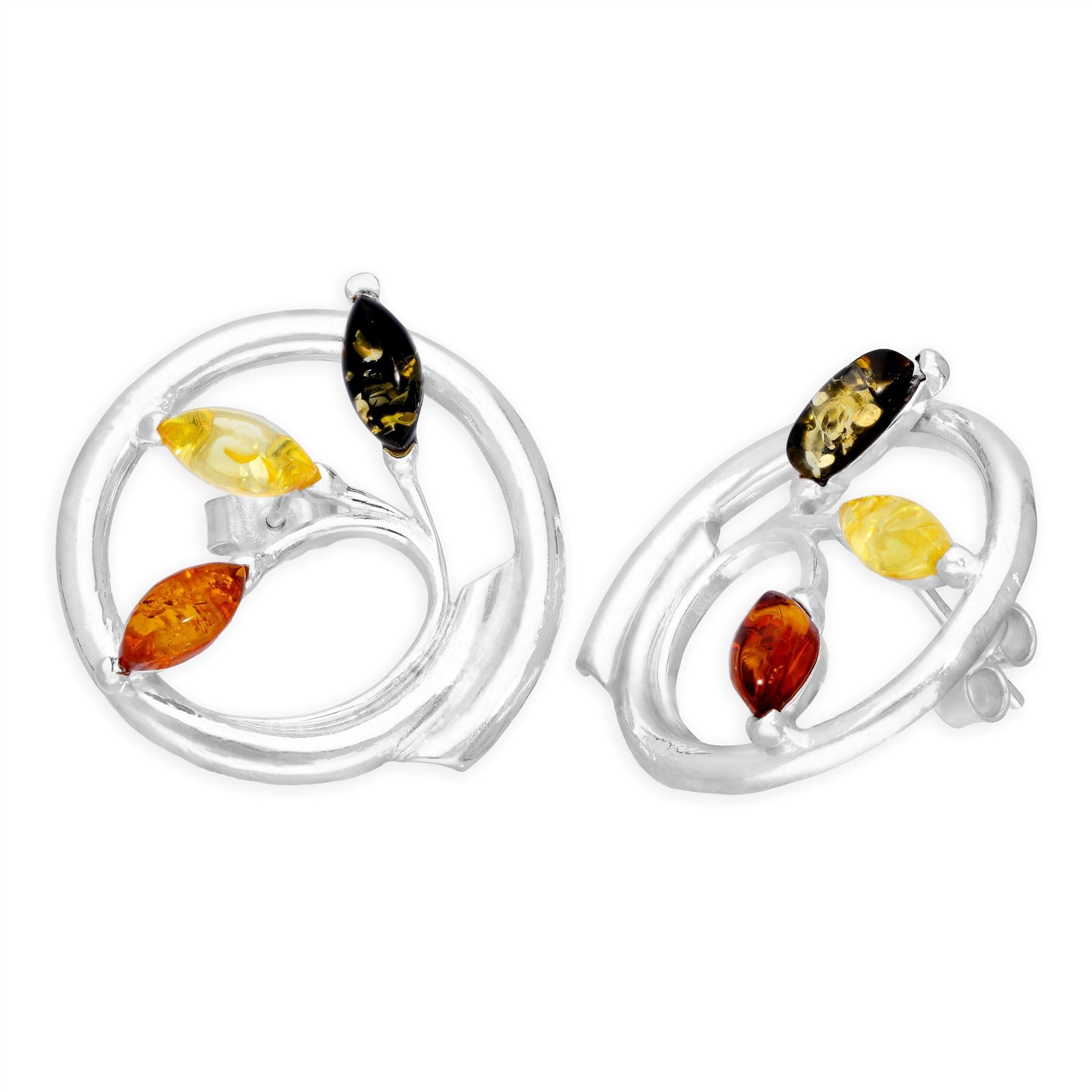 Ohrstecker aus Sterlingsilber und mehrfarbigem baltischem Bernstein mit Weinrebenmotiv