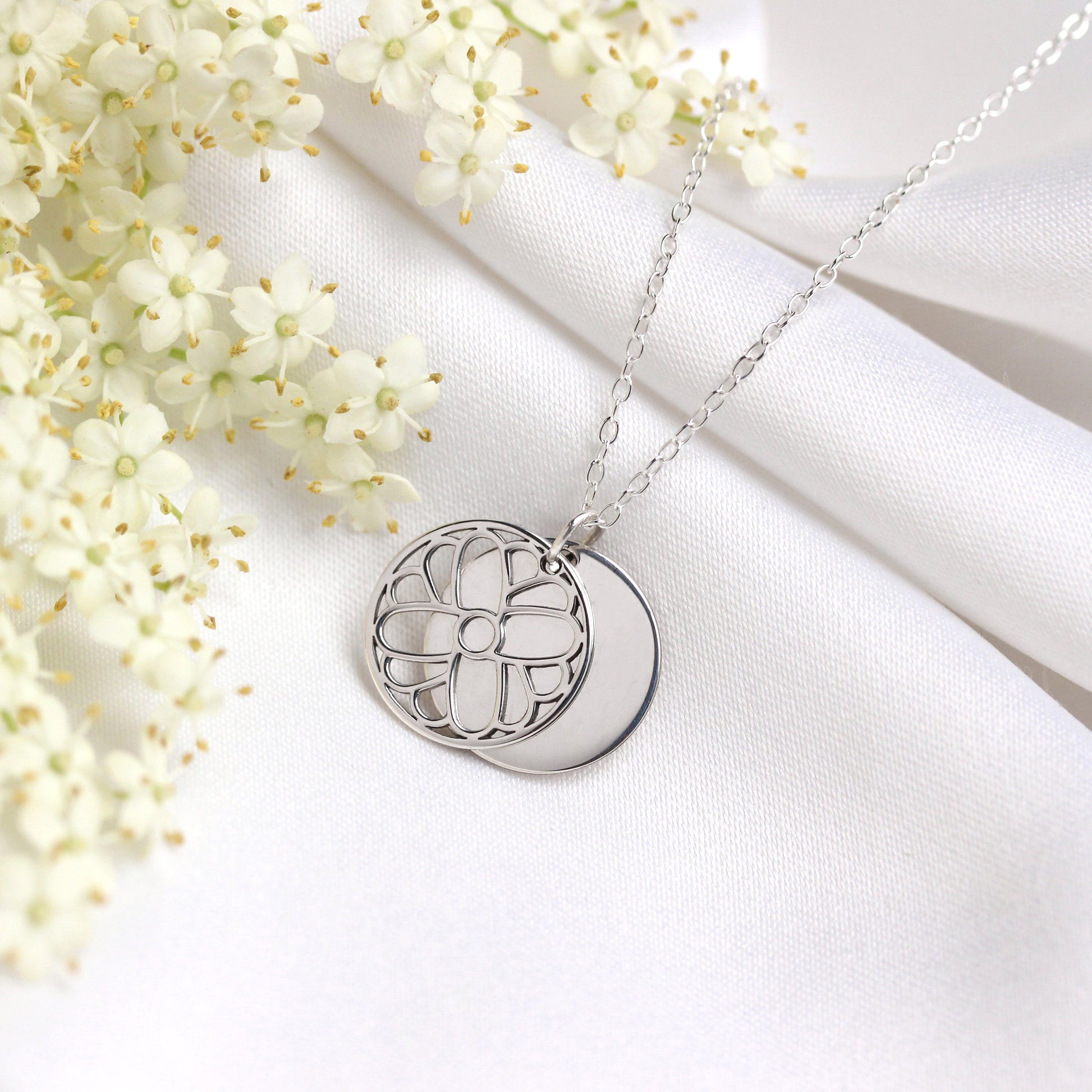 Sterling Silver October Marigold Birth Flower & 13mm Engravable Tag Necklace 14 - 22 Inches