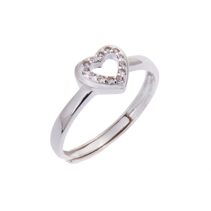 Sterlingsilber Offen CZ Kristall Herz Ring Größenverstellbar
