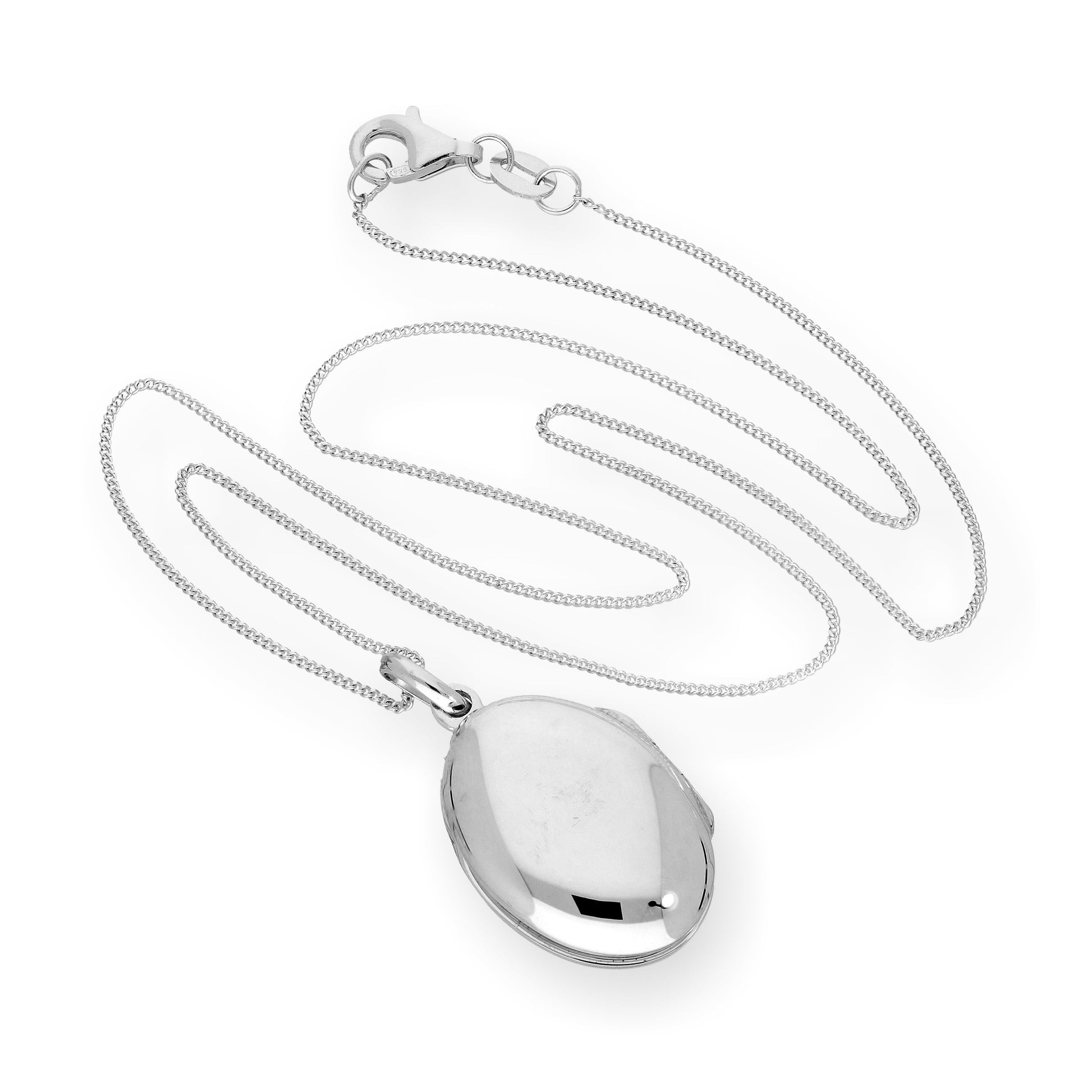 Sterling Silber ovales Medaillon mit Gravur an einer Kette 16 - 22 Zoll