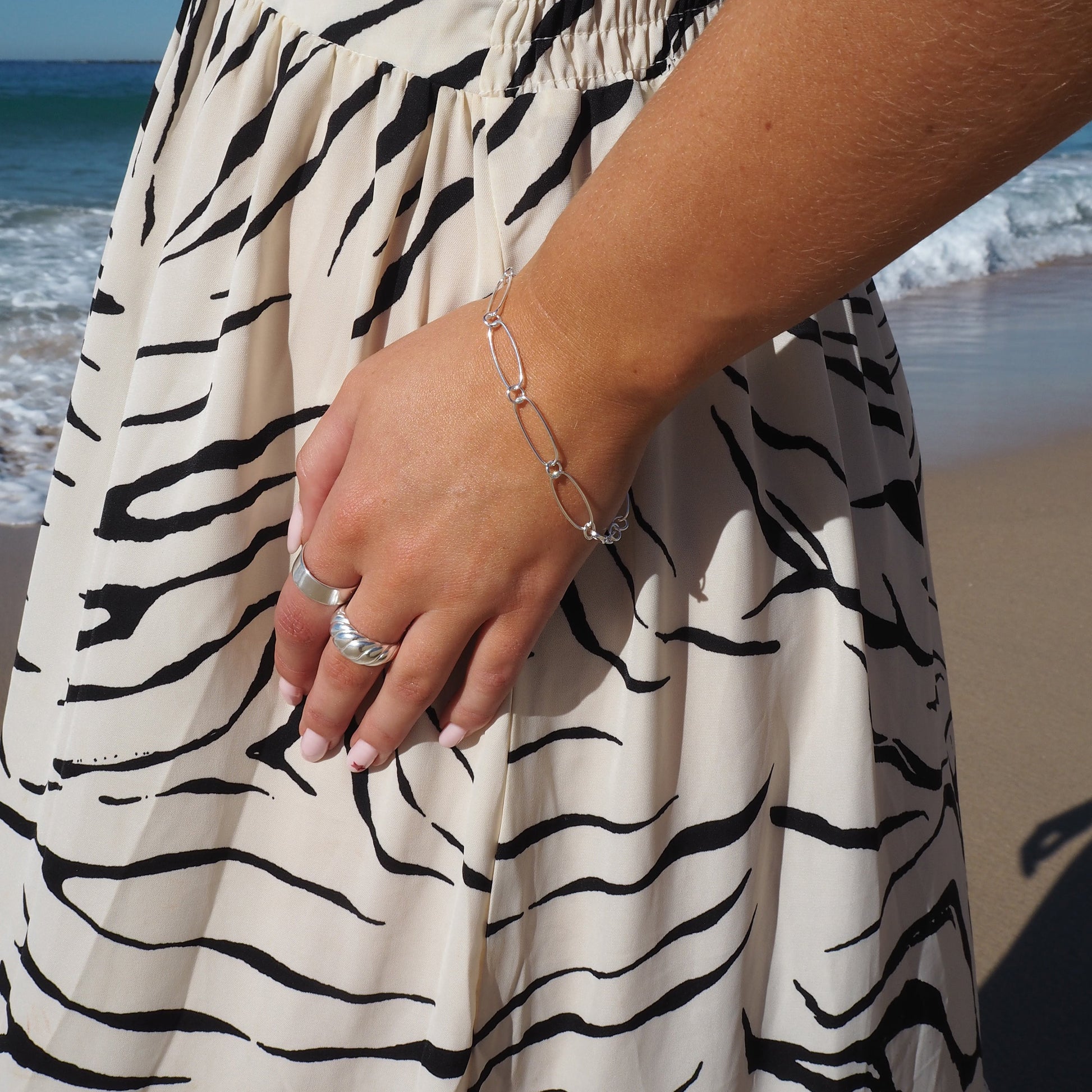 Armband aus Sterlingsilber mit ovalem Figaro-Anhänger – 19 cm