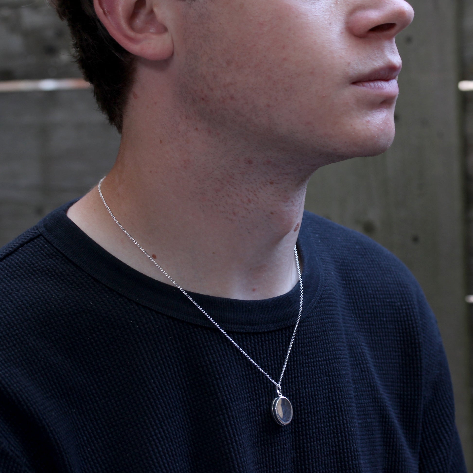 Halskette mit ovalem Medaillon aus Sterlingsilber an einer Kette