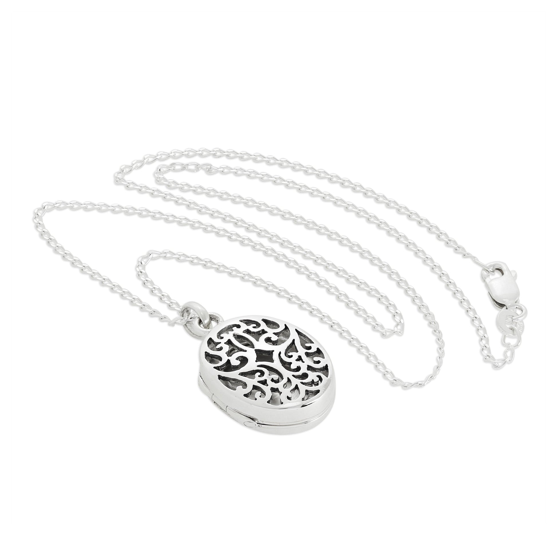 Ovales Medaillon aus Sterlingsilber mit filigranem Ausschnittdesign an Kette 16–24 Zoll