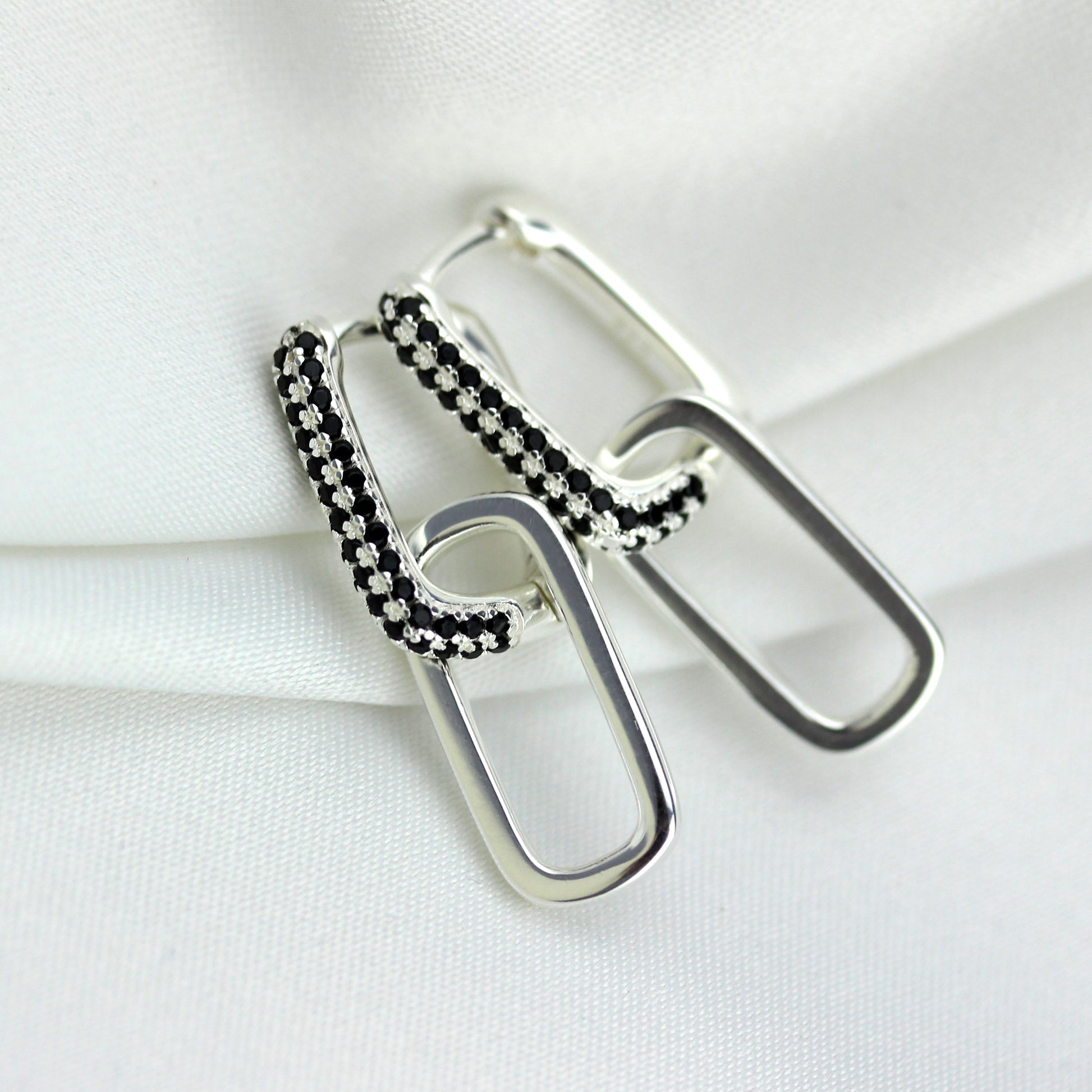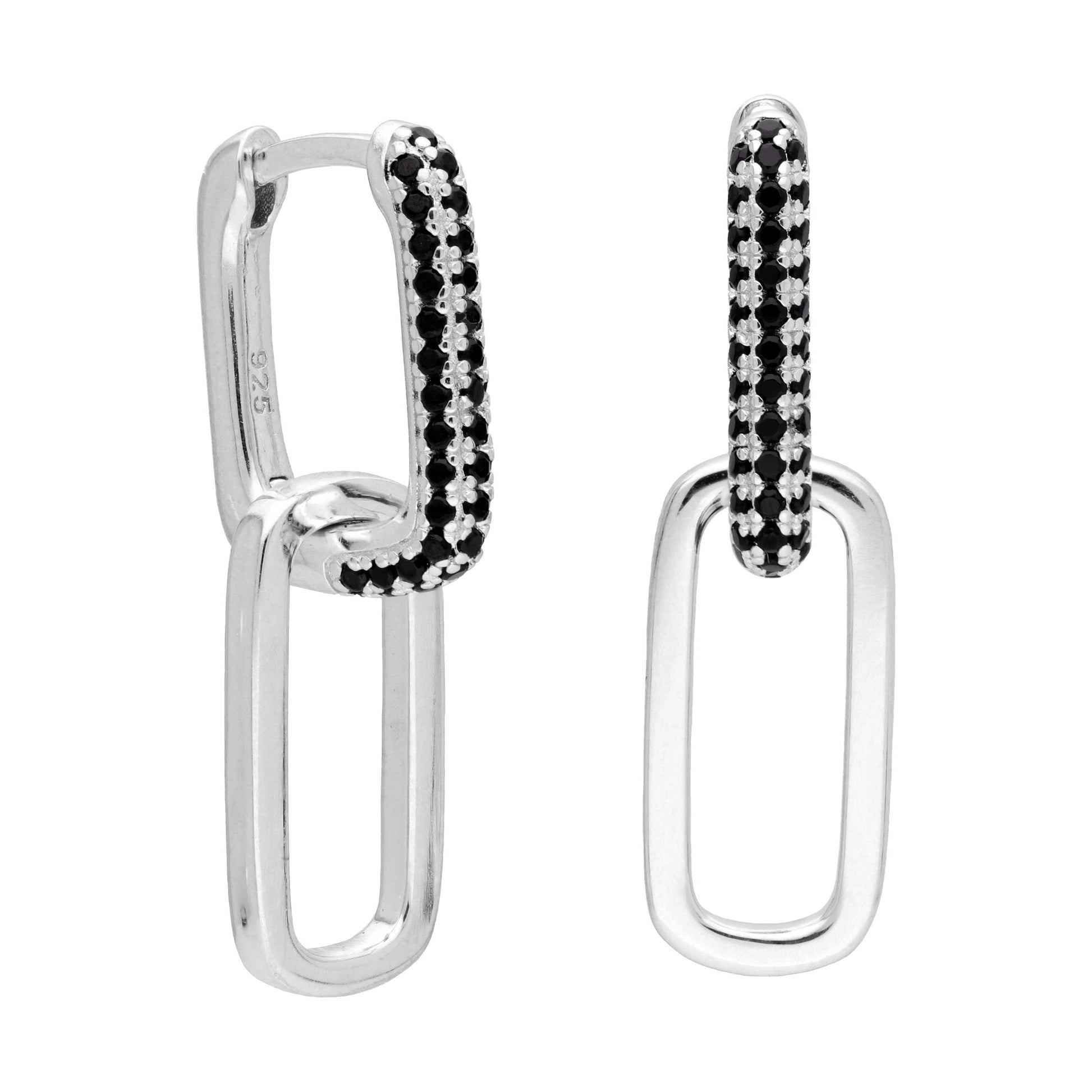 Sterlingsilber Eiförmig Schwarz CZ Kettenglied Creolen Ohrringe