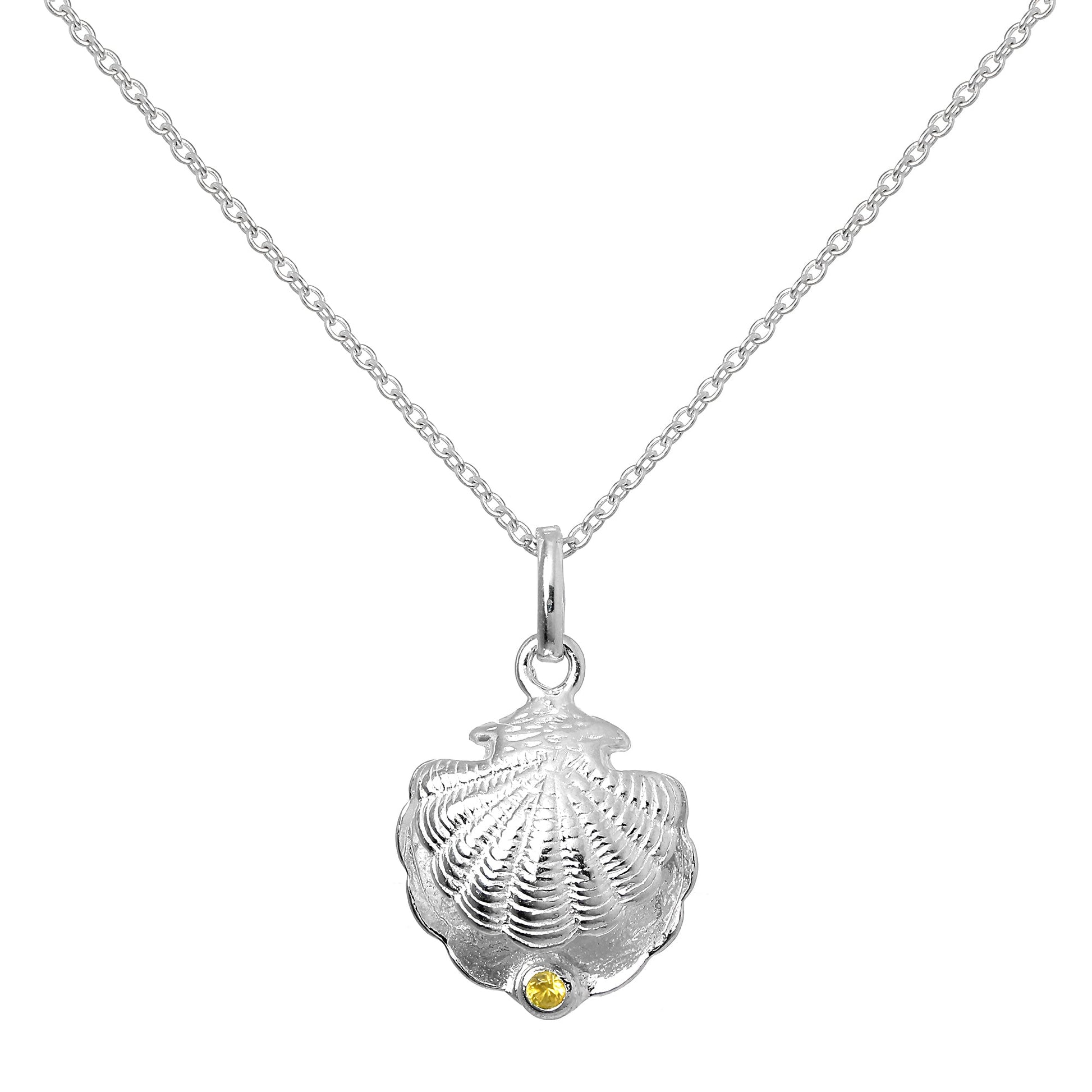 Sterling Silber Austernmuschel mit CZ Kristall Citrin Geburtsstein Halskette