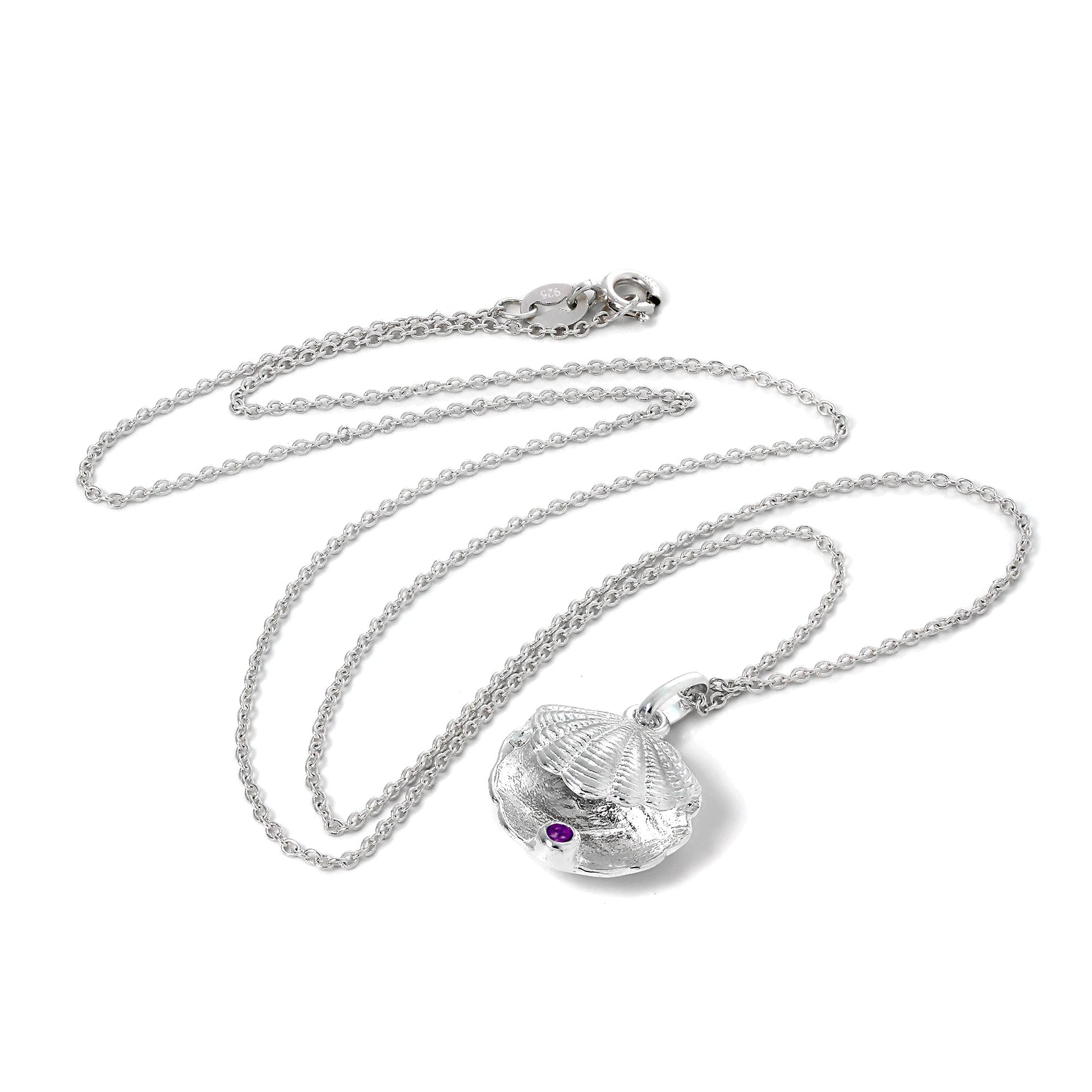 Halskette aus Sterlingsilber mit Austernschale und CZ-Kristall in der Farbe des Geburtssteins für den Monat Dezember