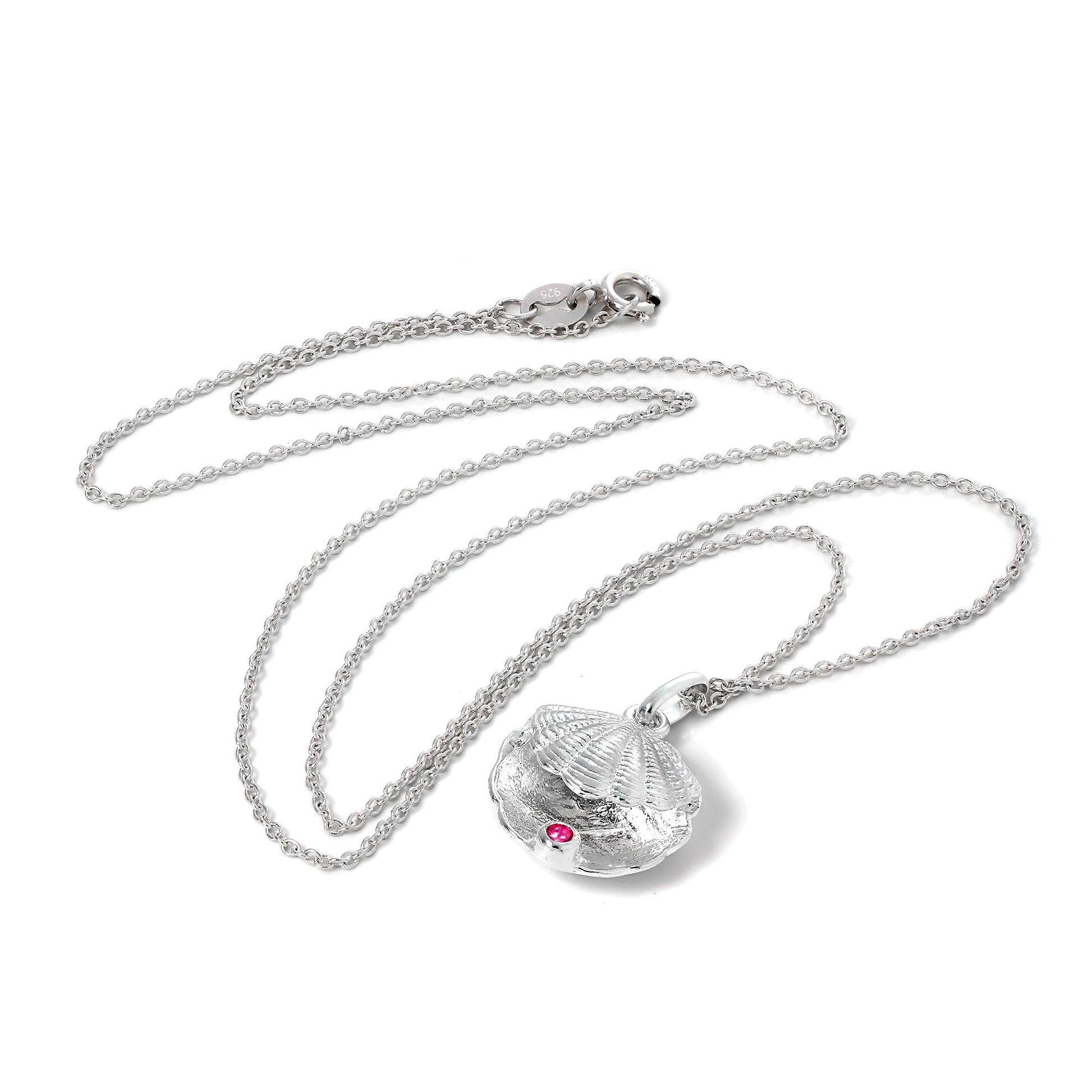 Halskette aus Sterlingsilber mit Austernschale und CZ-Kristall in der Farbe des Geburtssteins für den Monat Dezember