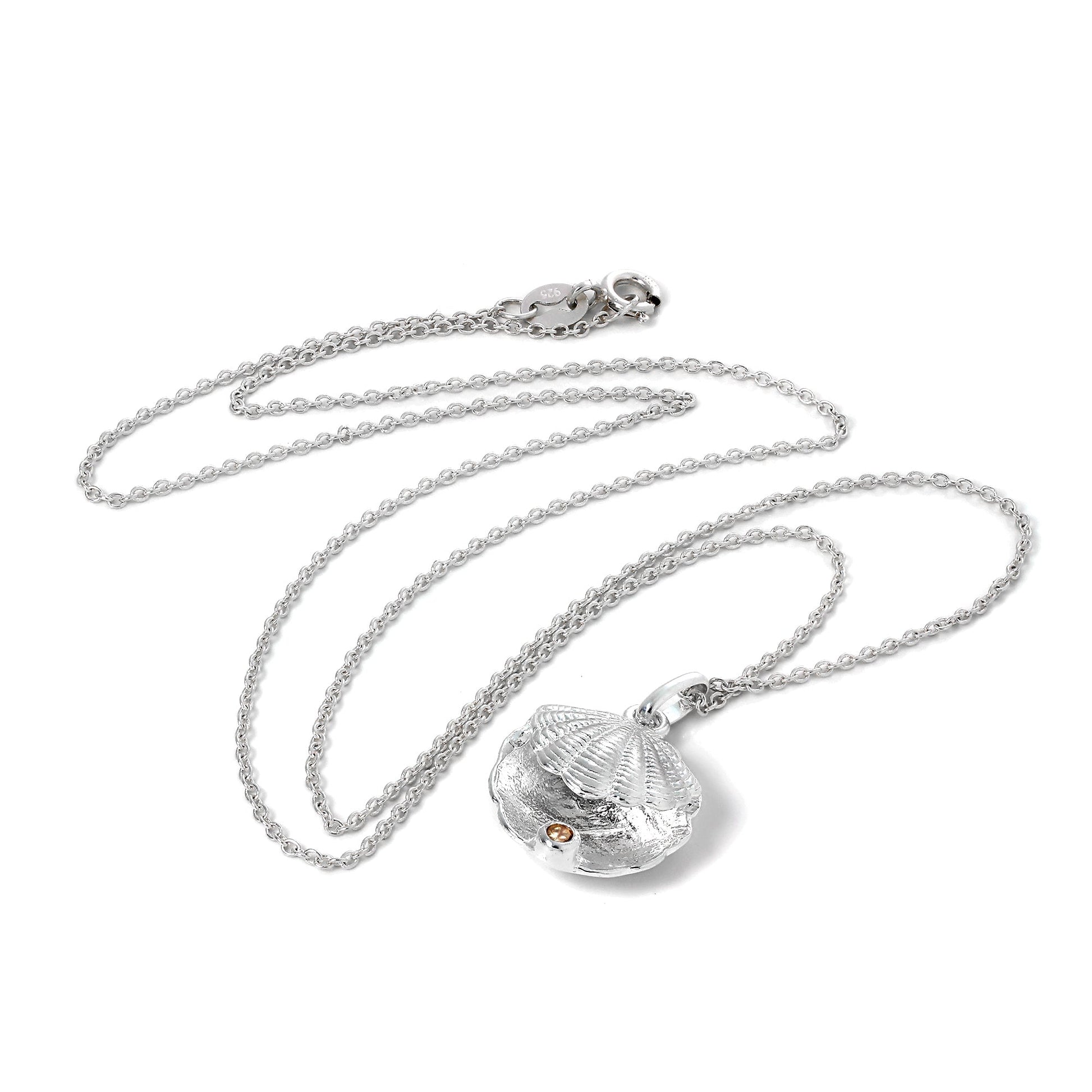 Sterlingsilber Austern Muschel mit CZ Kristall Topas Geburtsstein Halskette