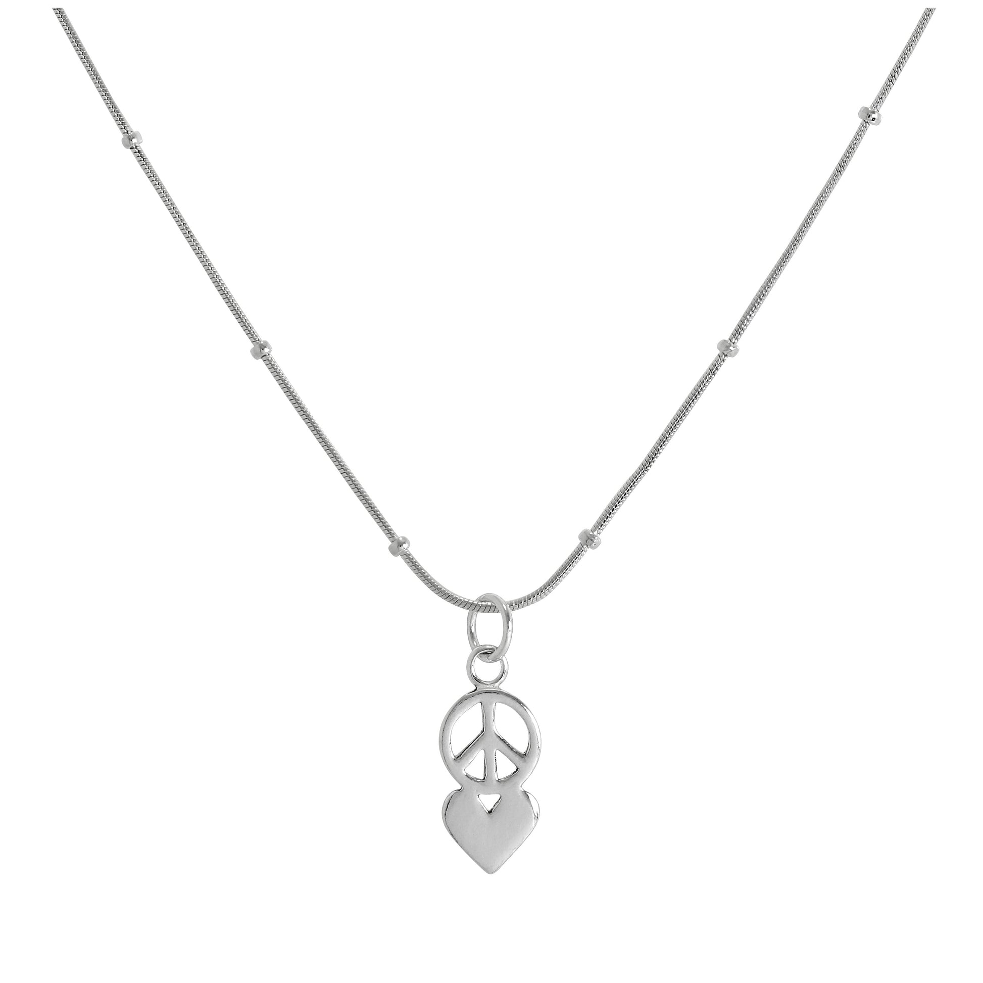 Halskette mit Anhänger aus Sterlingsilber mit Friedenssymbol und Herz 16–24 Zoll