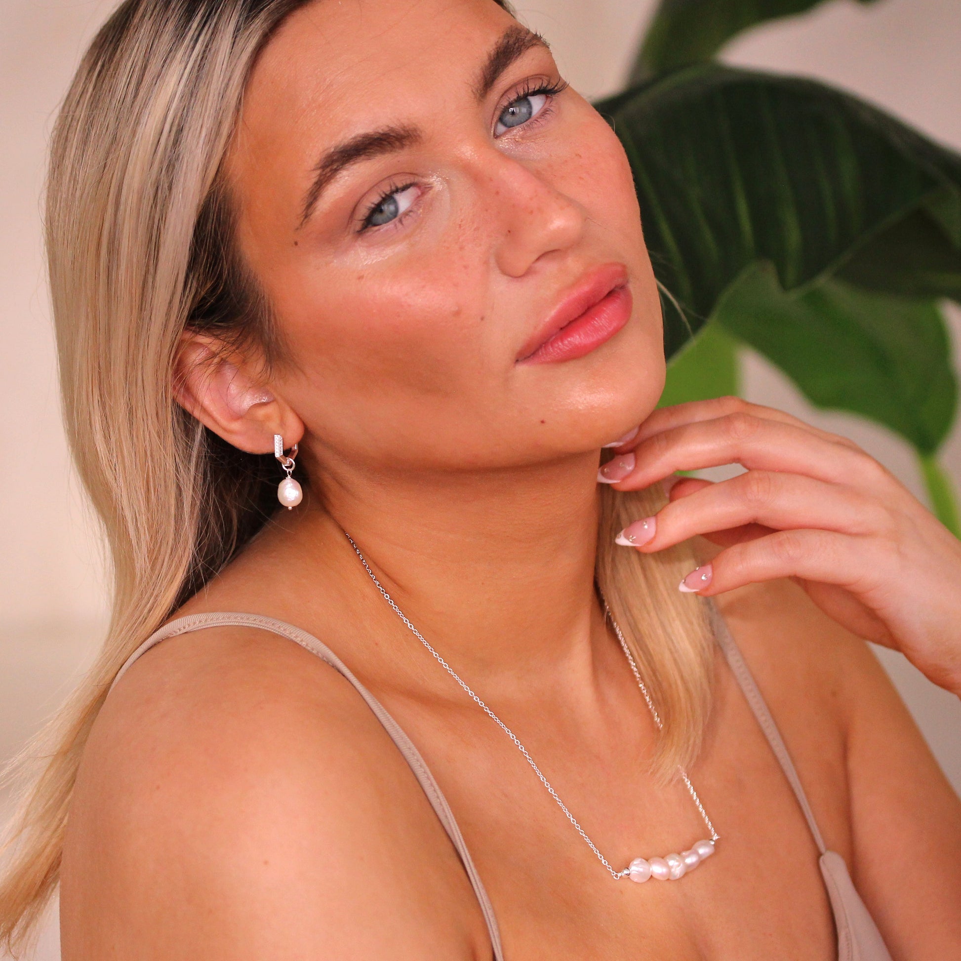 Sterlingsilber Perle CZ Anhänger 14mm Fünffeckig Creolen Ohrringe