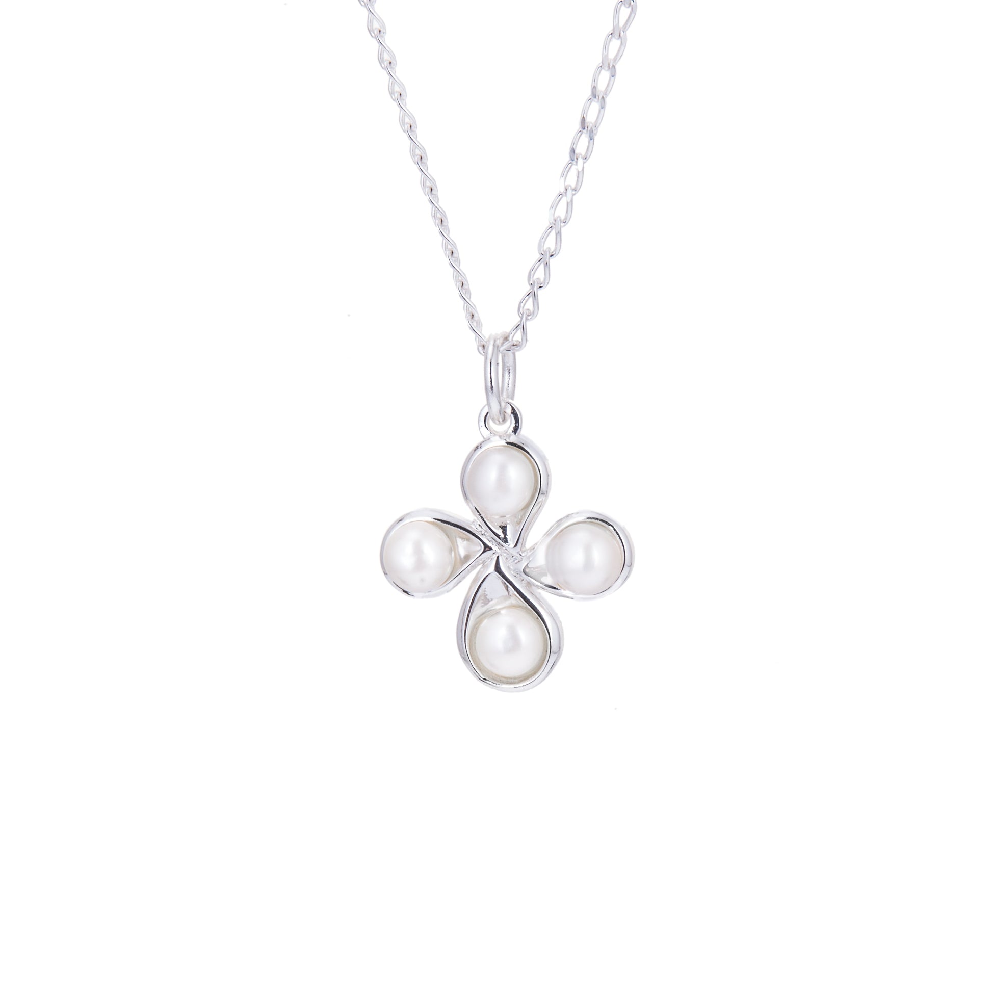 Halskette aus Sterlingsilber mit vierblättrigem Kleeblatt und Perle 14–22 Zoll