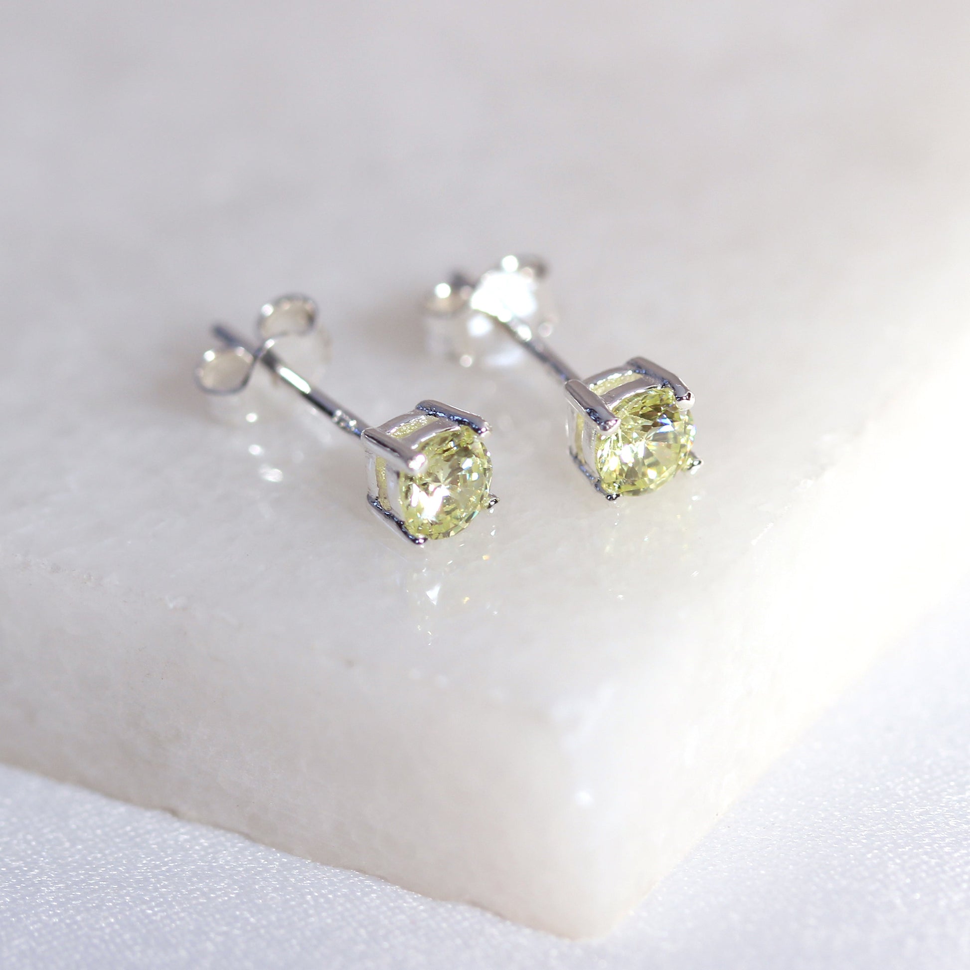 Sterlingsilber Peridot CZ Geburtsstein Krallen Fassung 4mm Ohrstecker