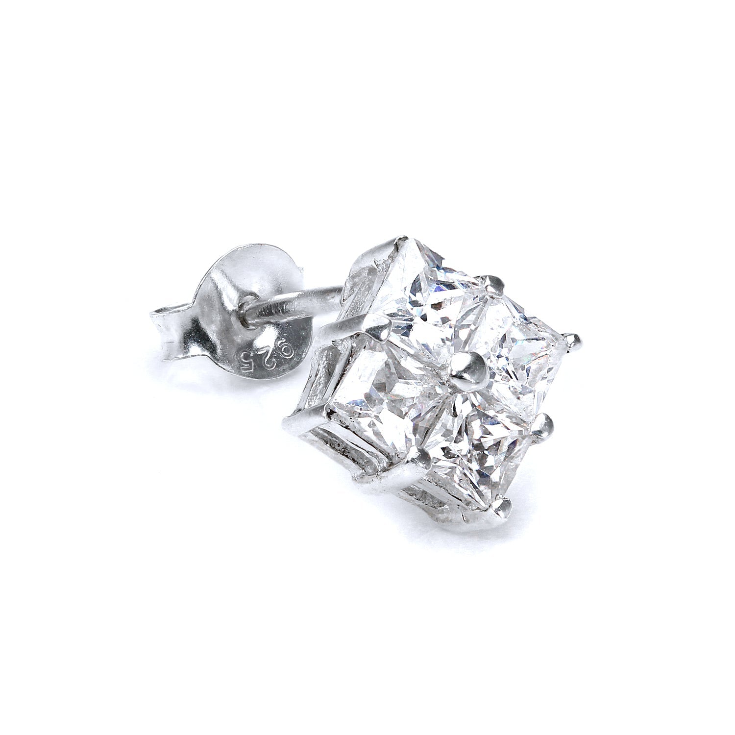 Sterlingsilber Vierfach Klar 6mm CZ Kristall Herren Ohrstecker