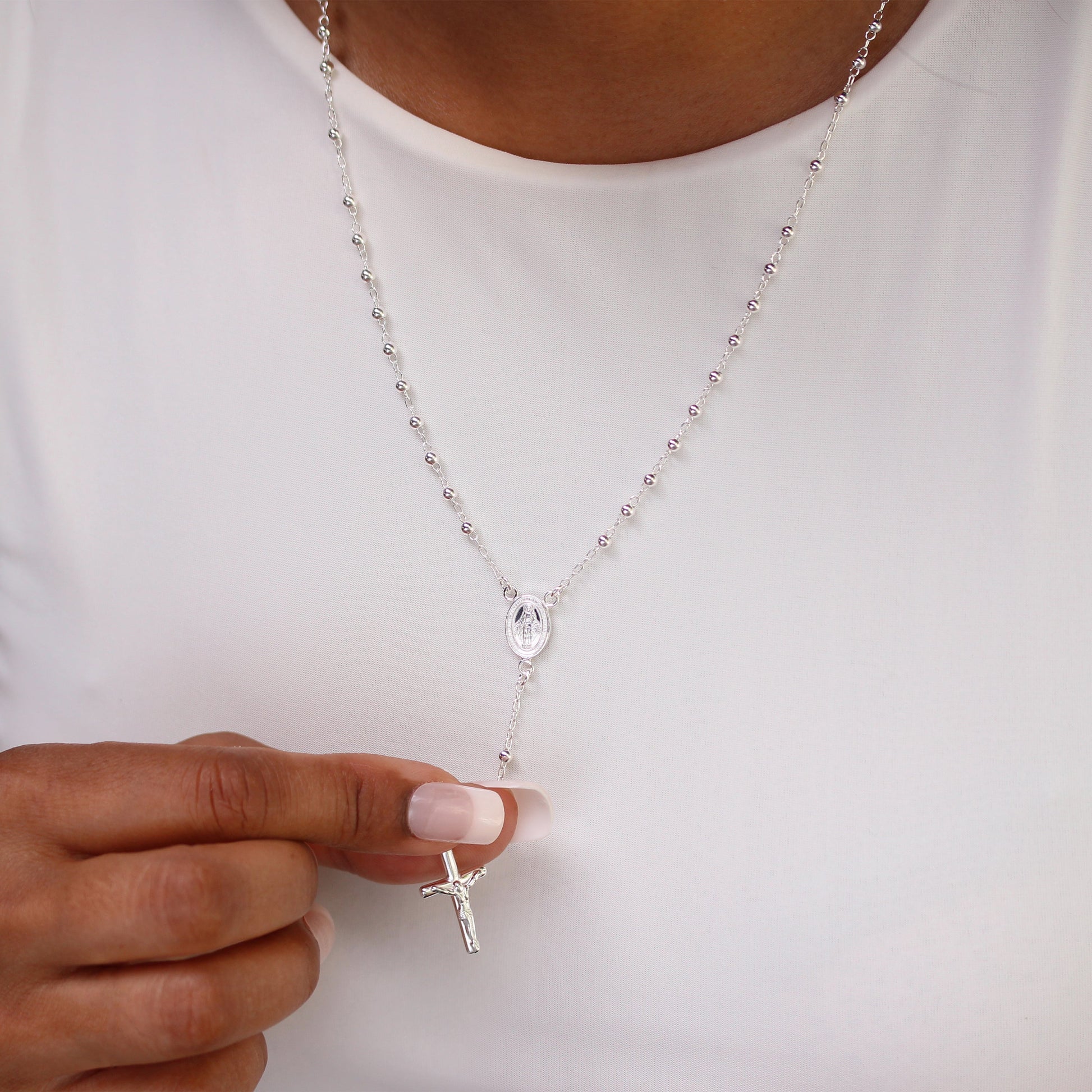 Sterling Silber Rosenkranz Perlen Halskette – 50 cm
