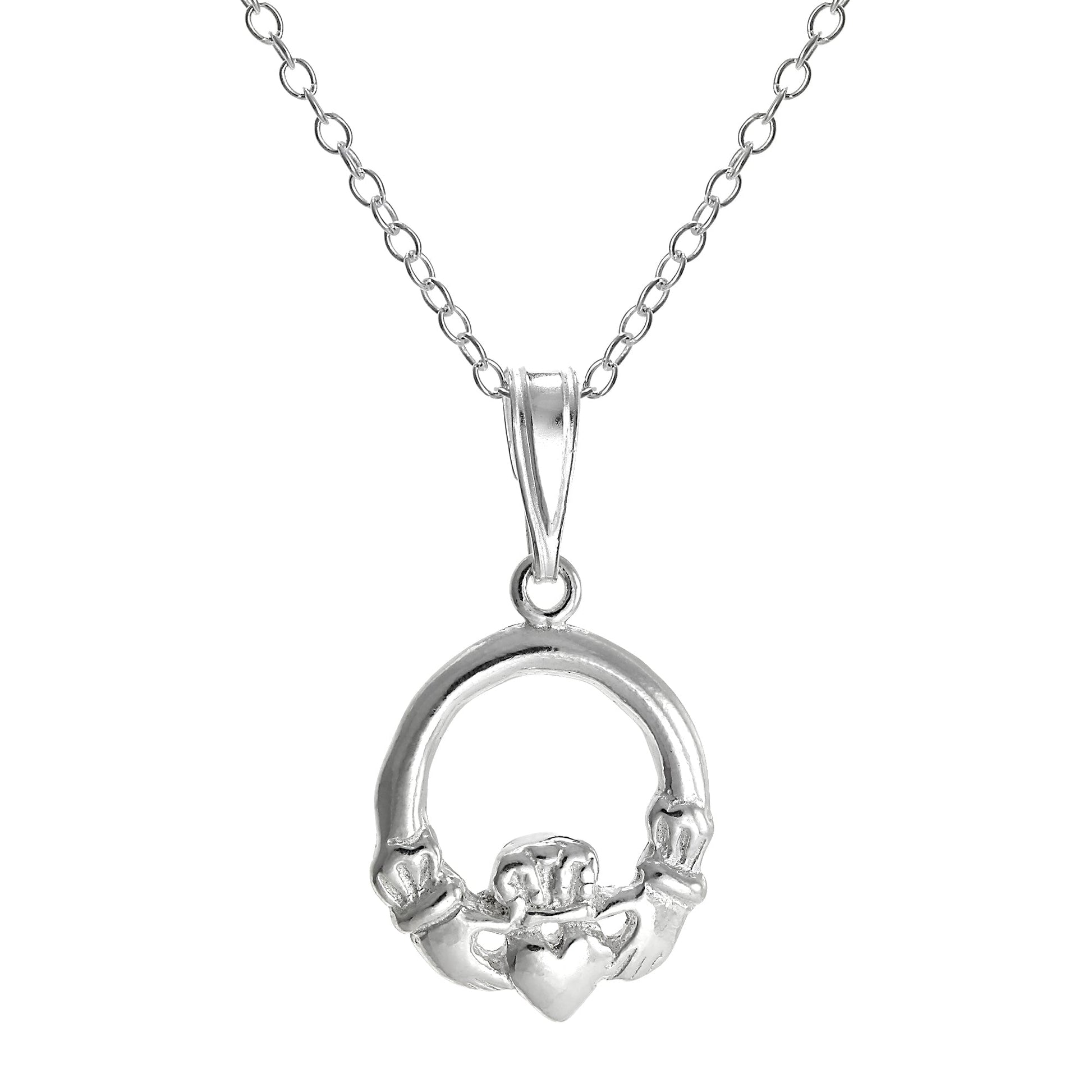 Sterlingsilber Rund Claddagh Anhänger Halskette an 45,5cm Kette