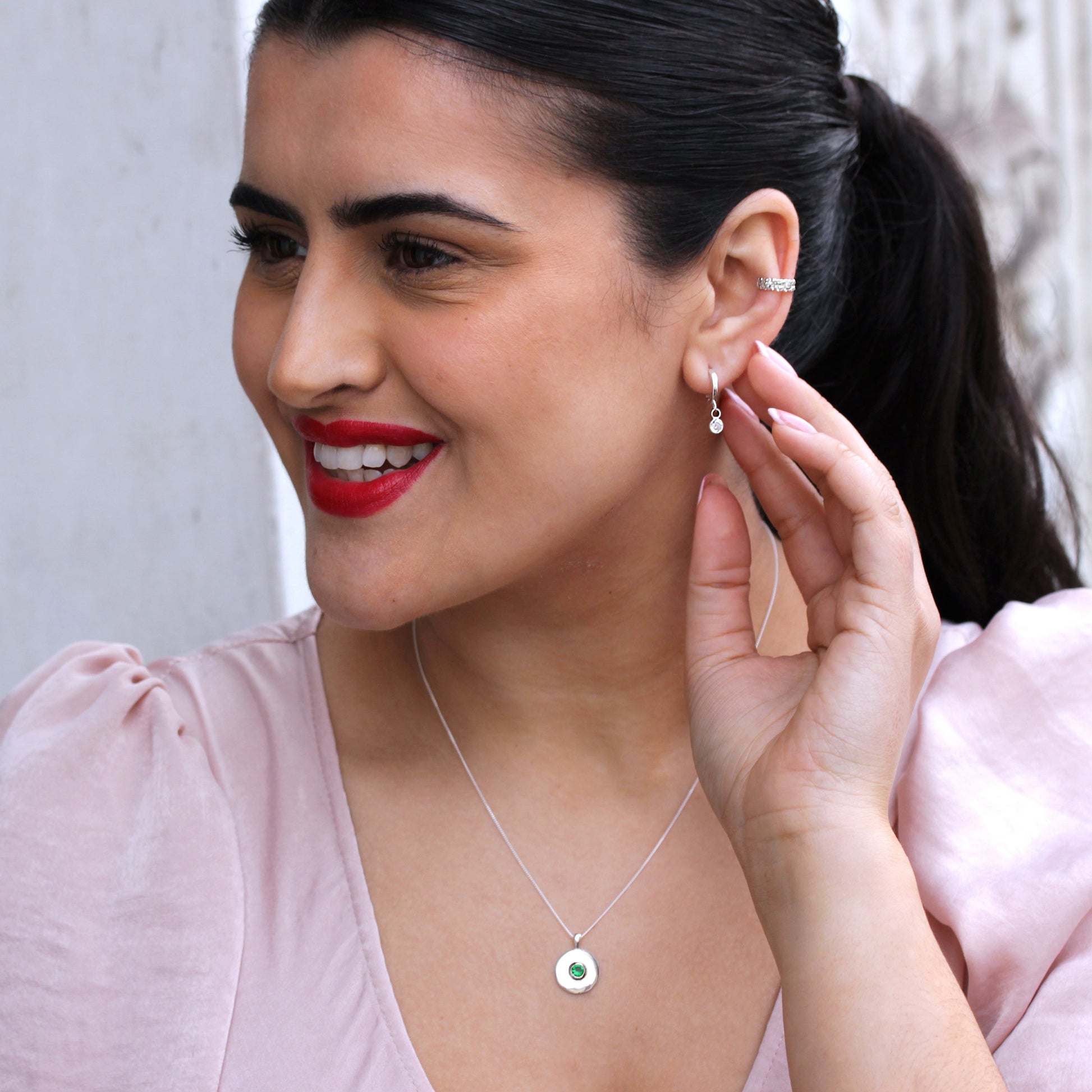 Sterlingsilber Rund CZ Anhänger Dick Klappcreolen Ohrringe