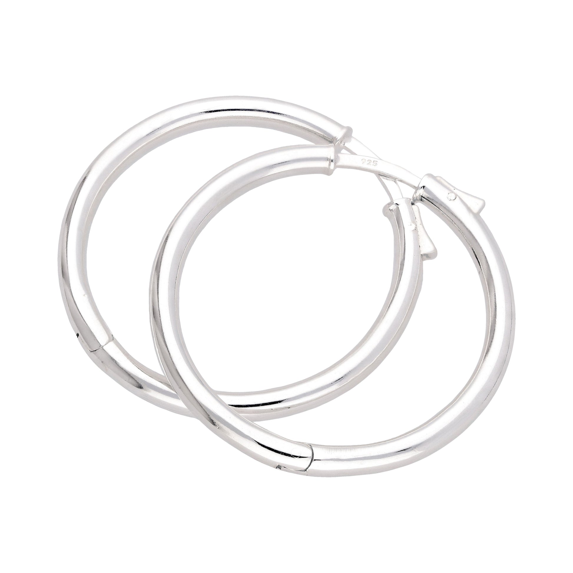 Sterlingsilber Rund Rohr Druckknopf 35mm Creolen Ohrringe