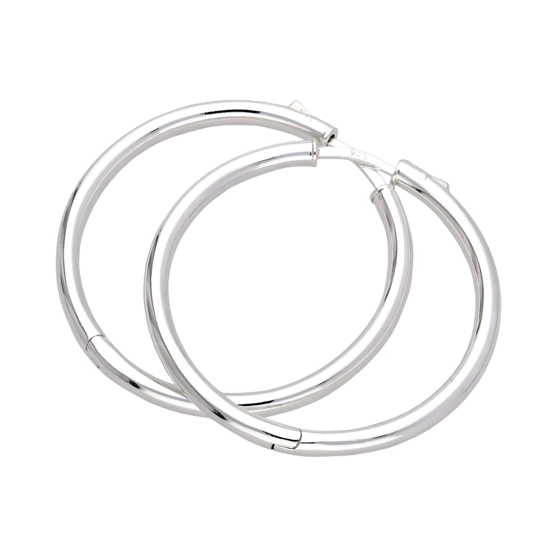 Sterlingsilber Rund Rohr Druckknopf 40mm Creolen Ohrringe