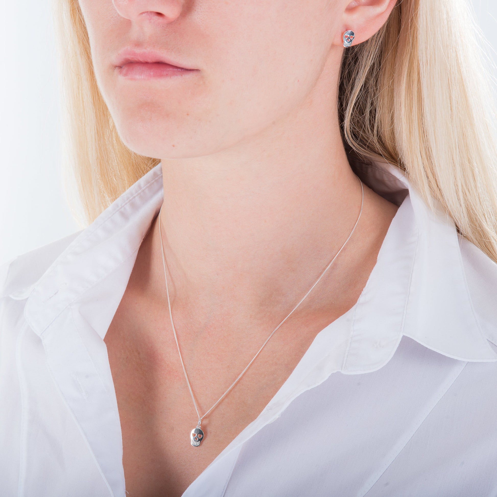 Sterlingsilber Totenkopf Herz Ohrstecker