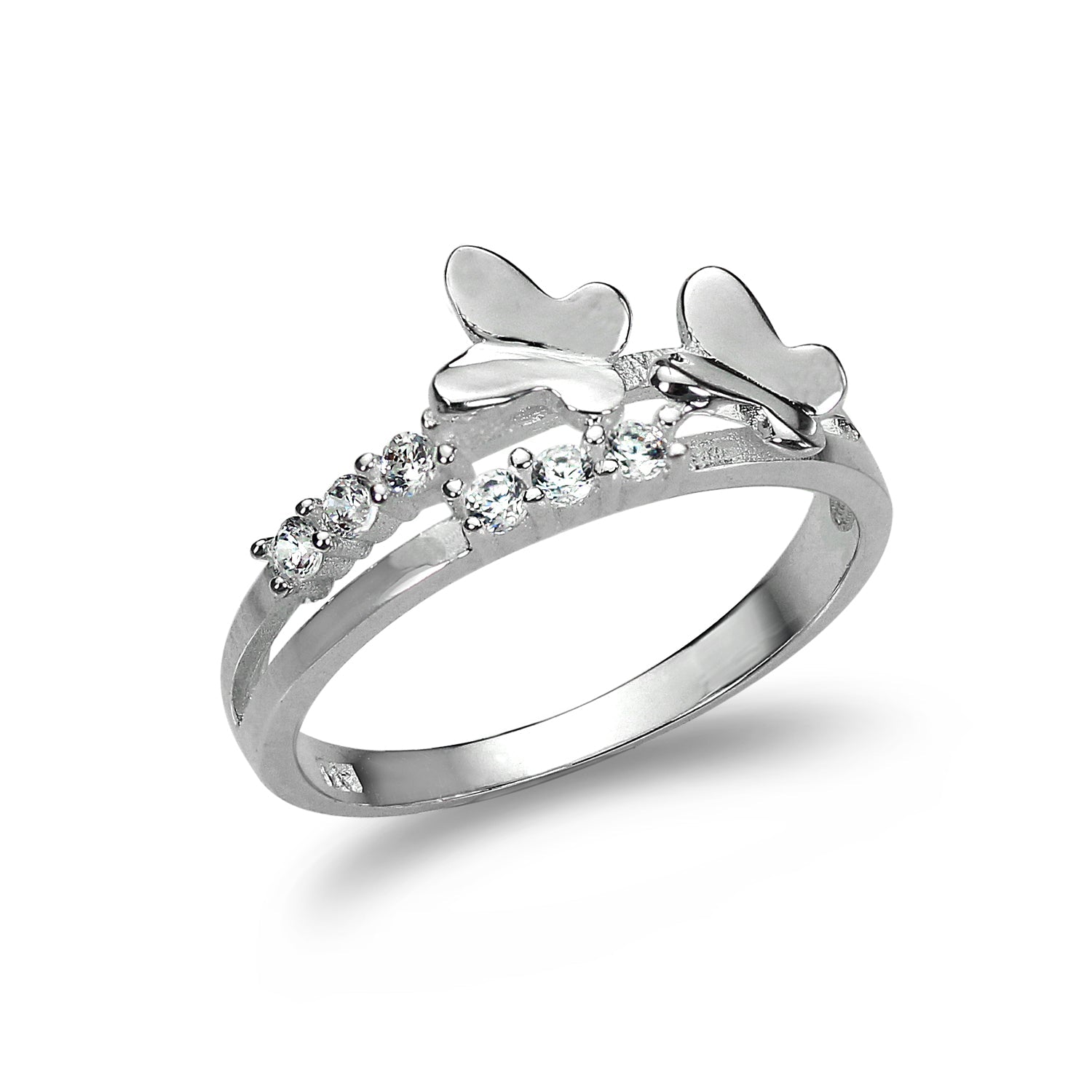 Geteilter Bandring aus Sterlingsilber mit CZ-Kristallen und Schmetterlingen – UK-Größen J–W