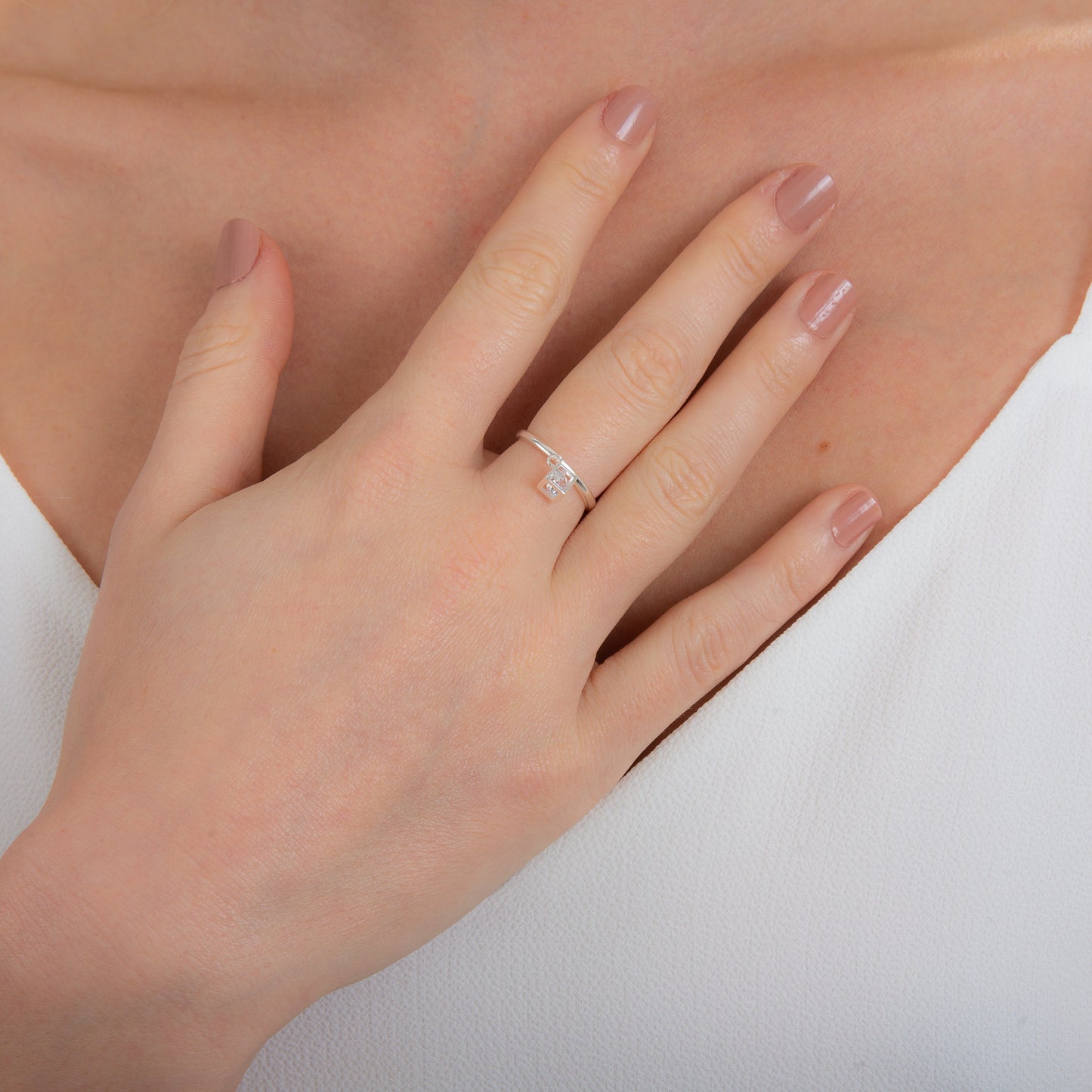 Sterlingsilber Viereck Würfel Hänge Baumel CZ Kristall Ring