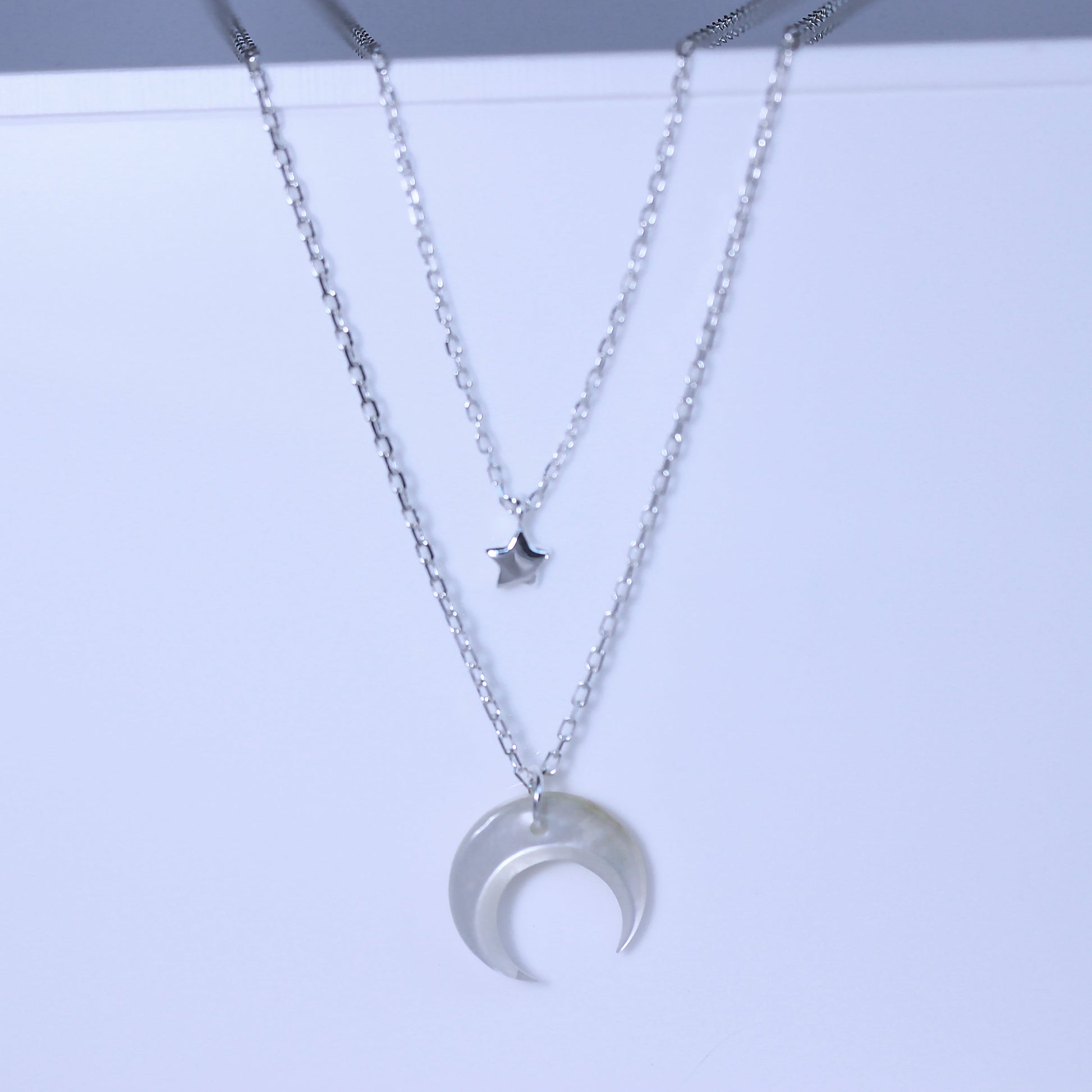 Sterlingsilber Stern & Halbmond Doppel Lagig Halskette