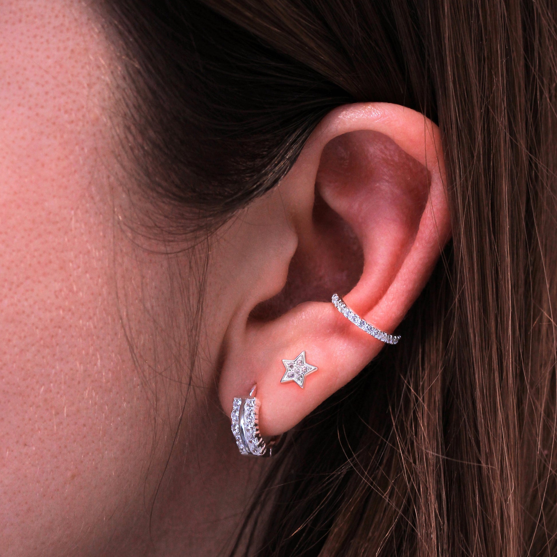 Sterlingsilber Stern Planet Frei kombinierbar Klar CZ Pavé - Fassung Ohrstekcer